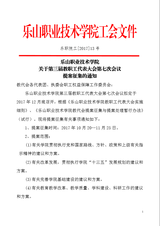 关于第三届教职工代表大会第七次会议提案征集的通知