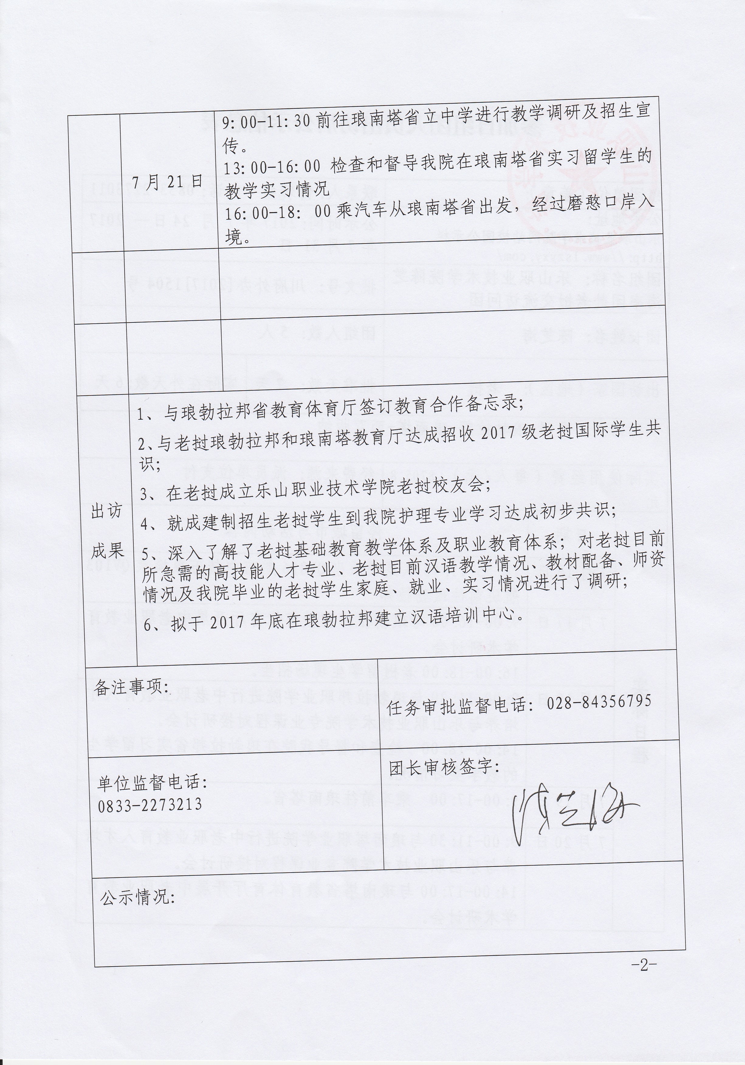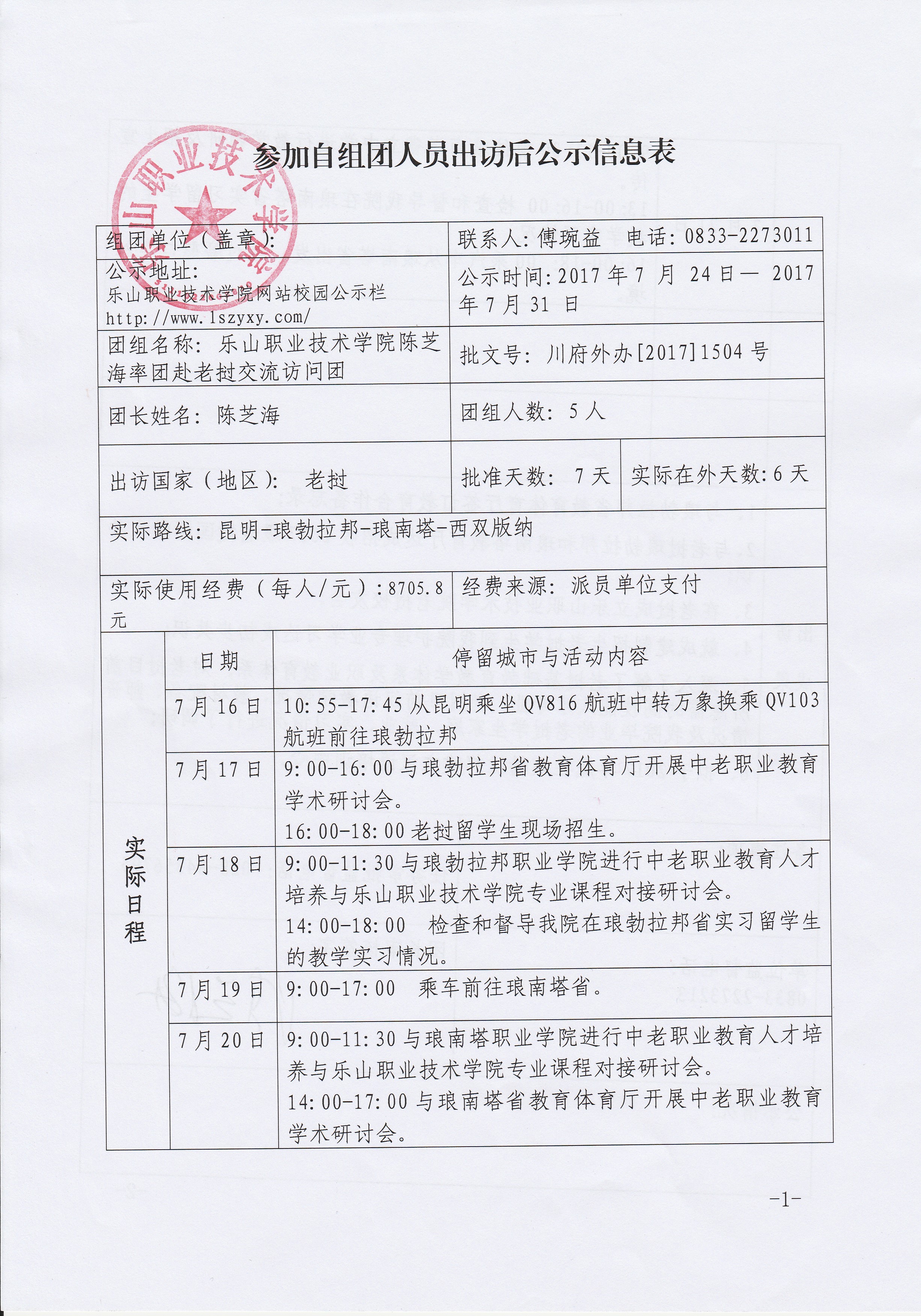 自组团人员出访后公示信息表