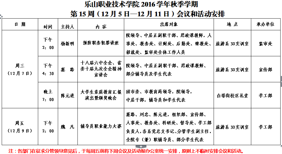 第15周(12月5日—12月11日)会议和活动安排