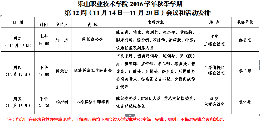 第12周(11月14日—11月20日)会议和活动安排