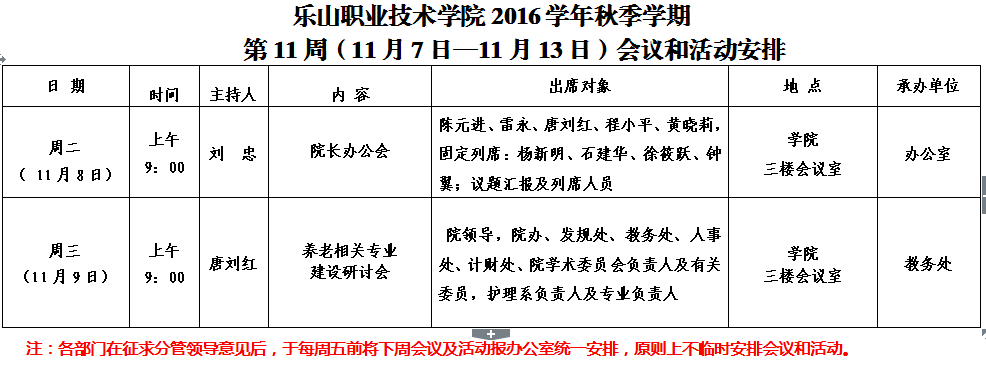 第11周(11月7日—11月13日)会议和活动安排