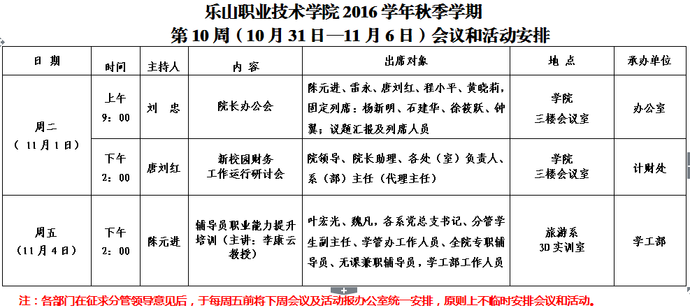 第10周(10月31日—11月6日)会议和活动安排