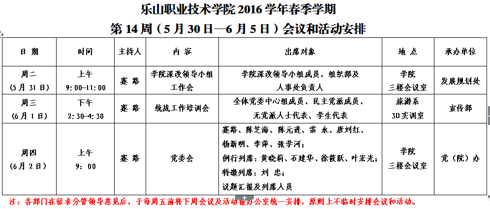 第14周(5月30日-6月5日)会议和活动安排