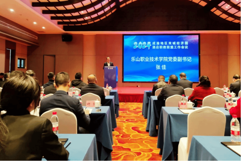 2024年11月21日,成渝地区双城经济圈酒店职教联盟2024年年会在重庆旅游职业学院召开,来自川、渝两地的联盟院校、协会及企业代表共 100余人参加了会议。beat365亚洲版官网党委副书记、工会主席张佳出席会议并在大会发言,学校文化旅游学院相关代表参加。