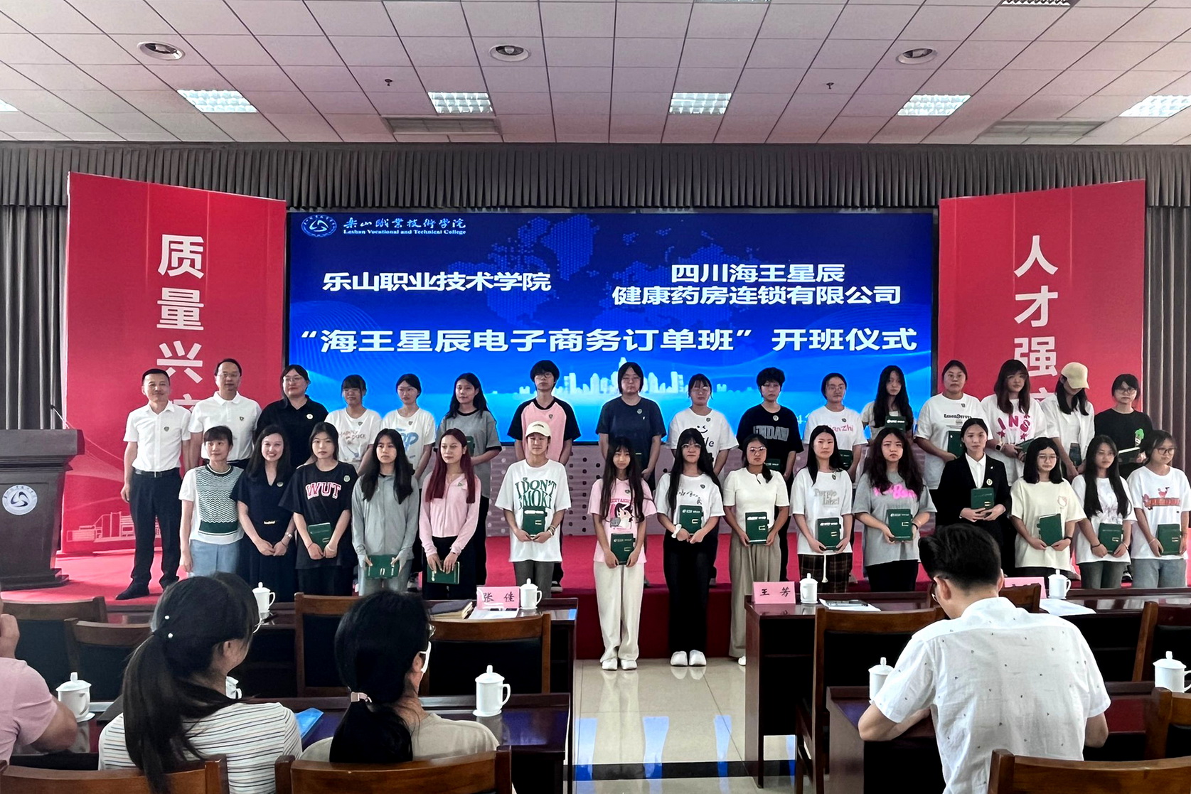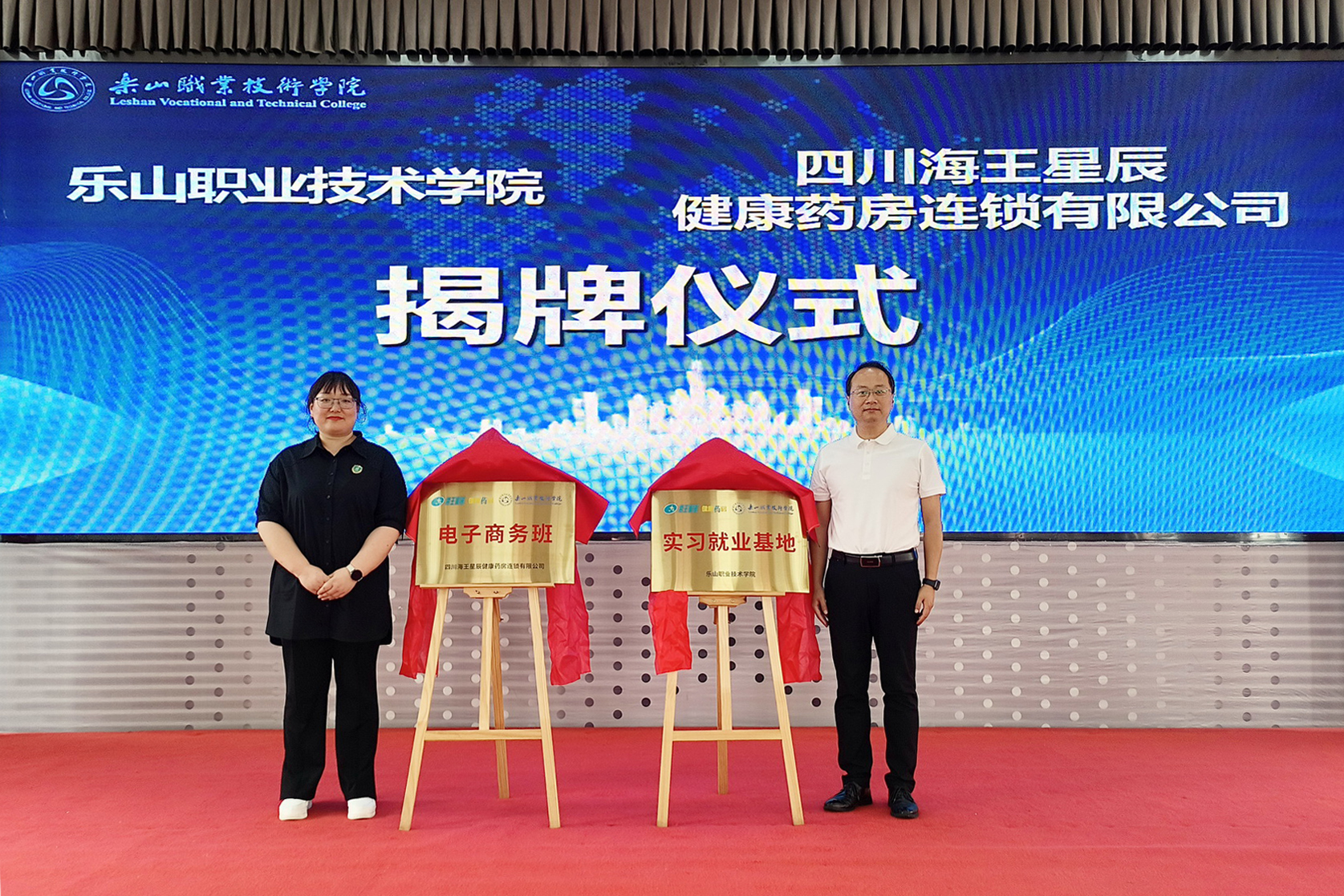 开班仪式上,张佳和王芳相共同为“海王星辰电子商务班”和“乐山职业技术校外实践教学基地”揭牌,为“海王星辰电子商务班”学员授予班徽和定制笔记本。beat365亚洲版官网毕业生、海王星辰优秀员工林静和“海王星辰电子商务班”学生代表汪怡莲作了发言。