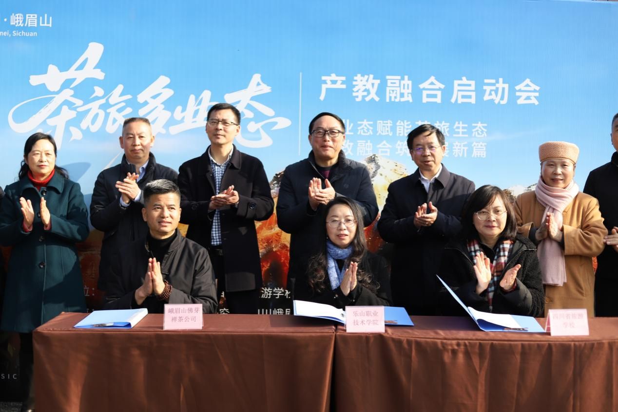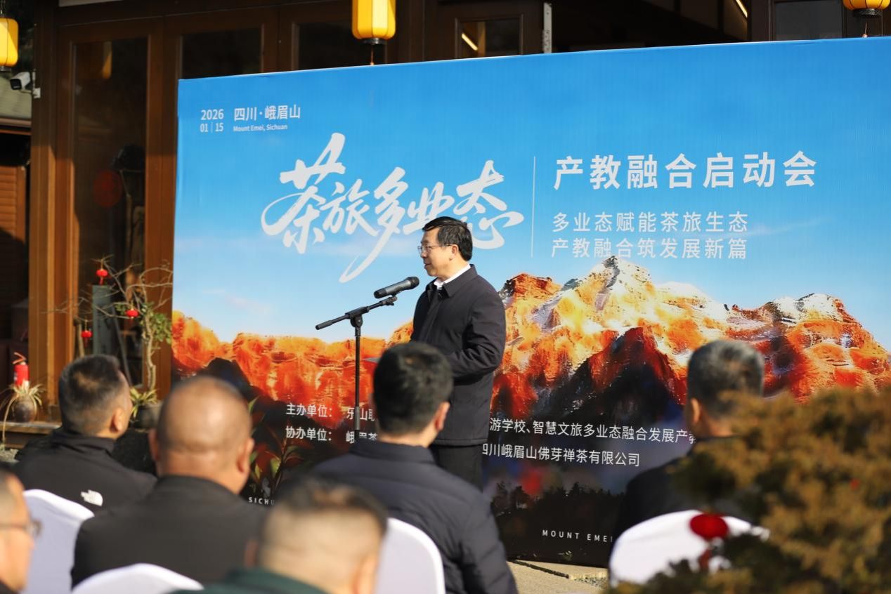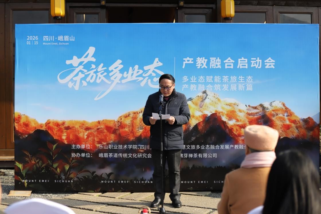 2026年1月15日,由beat365亚洲版官网、四川省旅游学校联合主办,峨眉山佛芽禅茶有限公司协办的“茶旅多业态产教融合启动会”在峨眉山佛芽禅茶庄园隆重举行。学校党委书记成定彬,四川省旅游学校党委书记、校长赵晓鸿,峨眉山佛芽禅茶有限公司董事长谯英成,学校党委委员、副校长周芹,乐山市政协副秘书长万谦,乐山市农业农村局副局长杨波,乐山市文化广播电视和旅游局四级调研员文勇,乐山市教育局总督学陈凯,峨眉山市政协党组副书记、副主席邹利琼等领导及相关院校、企业、地方政府代表50余人出席会议,会议由四川省旅游学校副校长吴越强主持。