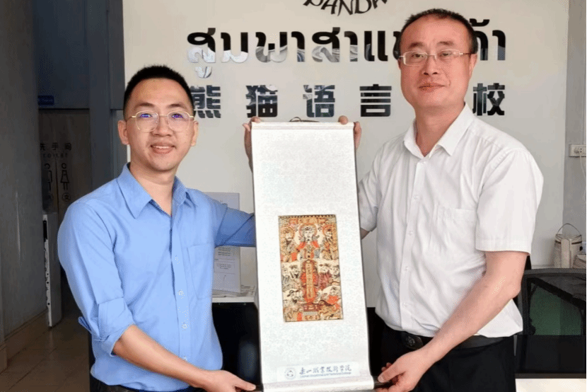 访问期间,刘忠代表学校为beat365老挝毕业生Mr.Laochu Bounthong创办的LC语言学校授牌“beat365亚洲版官网来华留学生生源基地”,与泰国皇家吉拉达泰国皇家吉拉达学校校长Assoc. Prof. Khunying Sumonta Promboon一同为两校合作共建的“中国川菜文化交流中心”揭牌。