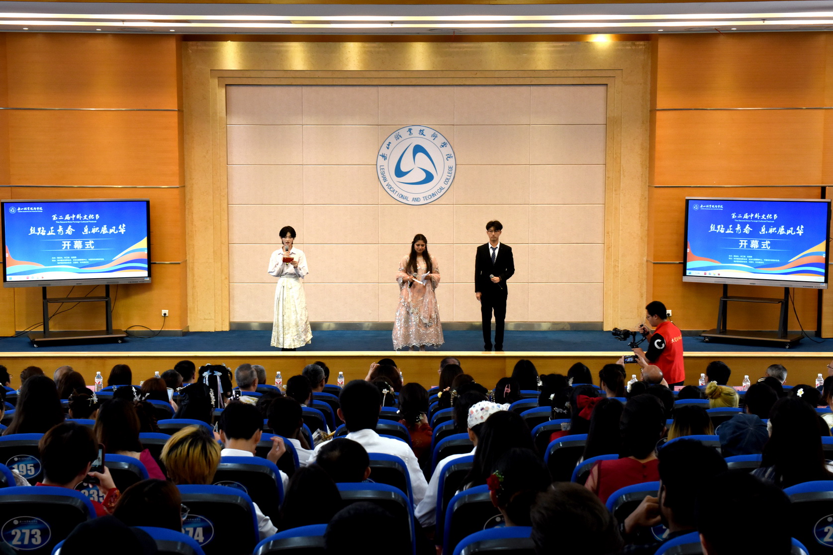 4月12日下午,beat365亚洲版官网“丝路正青春、乐职展风华”第二届中外文化节在图书馆学术报告厅拉开帷幕。学校领导成定彬、刘忠、张佳、陈元进、张学河、周芹,学校相关部门负责人、二级学院相关负责人,全体来华留学生以及300余名中国学生代表参加了文化节开幕式。文化节由国际交流合作处、学生工作部、校团委主办。