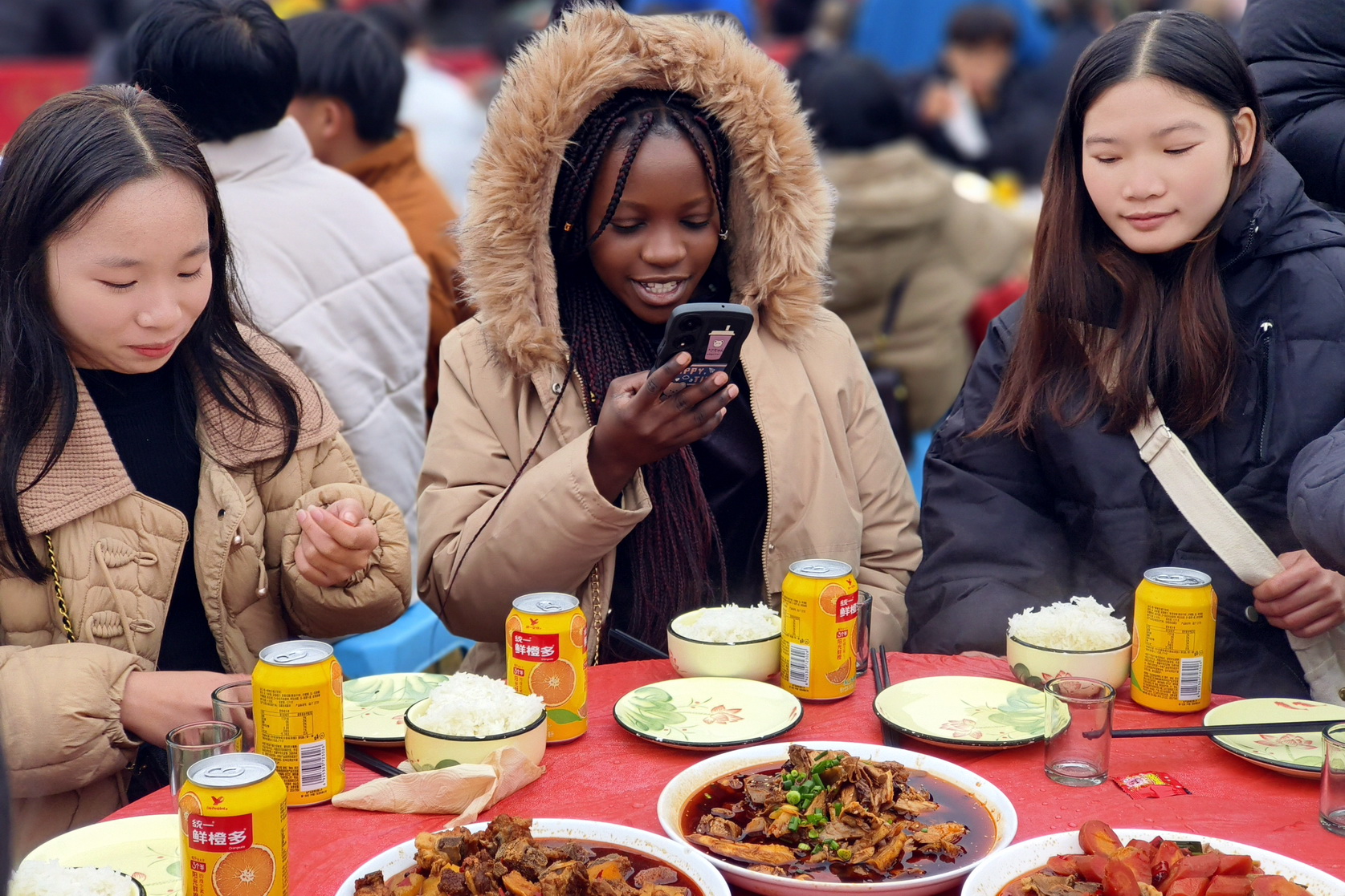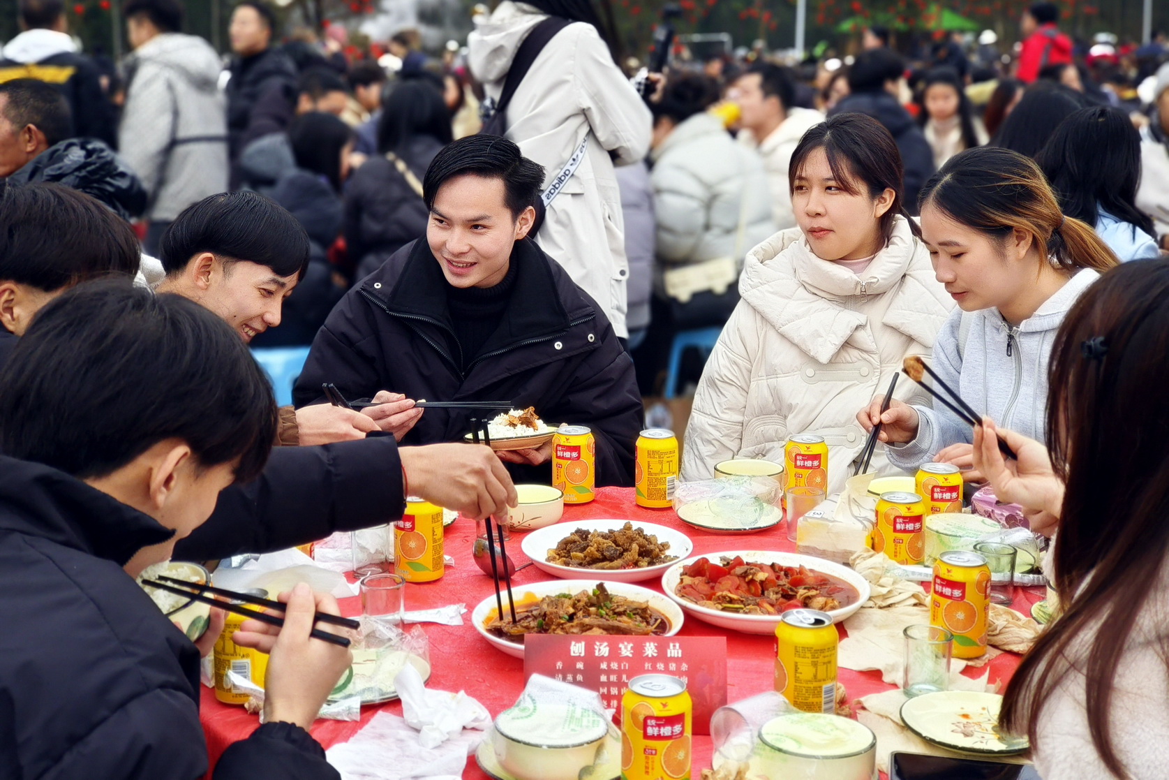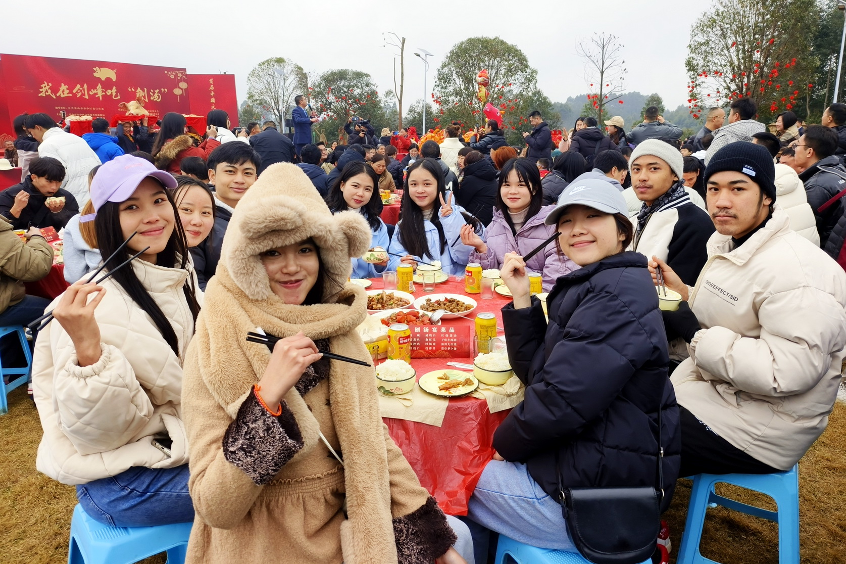 此次“千人吃刨汤”活动立足于弘扬传统年俗文化、推动乡村旅游发展,让参与者沉浸式感受乐山新农村独特的年味儿文化。活动中,来华留学生亲身体验了投壶、剪纸、猜灯谜、拓印年画、千人刨猪汤等传统民俗活动,观看了川剧变脸、舞龙舞狮,年猪祭祀等表演项目,虽然天公不作美,但是来华留学生们还是兴致盎然。