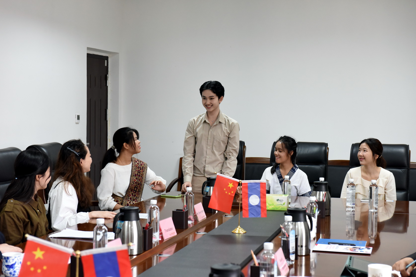 座谈会上,刘忠对琅勃拉邦省教育与体育厅代表团一行来访表示热烈欢迎,他向客人介绍了学校基本情况、办学历史、特色专业以及国际交流合作情况,希望双方在课程开发、合作办学等方面加强交流合作。布阿莱•伊蒂丰回顾了琅勃拉邦省教育与体育厅与beat365亚洲版官网的合作交流历程,希望双方继续拓展合作领域,进一步深化交流合作。老挝籍学生代表分享了在beat365的学习生活情况,对学校领导和老师的关心照顾表示衷心感谢。双方就师生交流、中外合作办学项目等事宜进行了进一步商讨。
