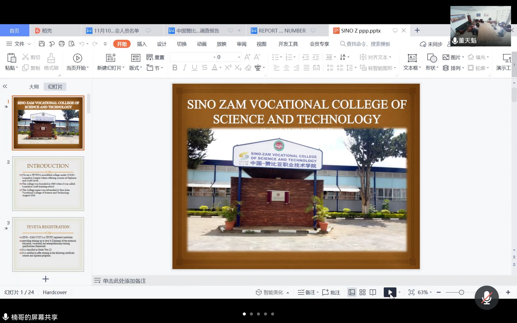 赵丽霞介绍了中赞职业技术学院工作进展情况,该学院是我国教育对外开放的亮点,受到教育部的高度重视。赞方校长YAWA介绍了中赞职业技术学院的基本情况,中赞职业技术学院董事王楠介绍了学院运行情况及2022年招生工作安排。各参与院校领导介绍了相关专业发展和工作进展。