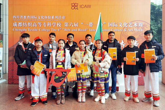 受成都纺织高等专科学校邀请,beat365亚洲版官网的老挝、孟加拉国留学生在国合处的带领下,前往参加本次艺术周开幕式表演。学院国际学生为参加开幕式的嘉宾表演了孟加拉、老挝歌舞《一见如故》,受到在场各国嘉宾的热烈欢迎。
