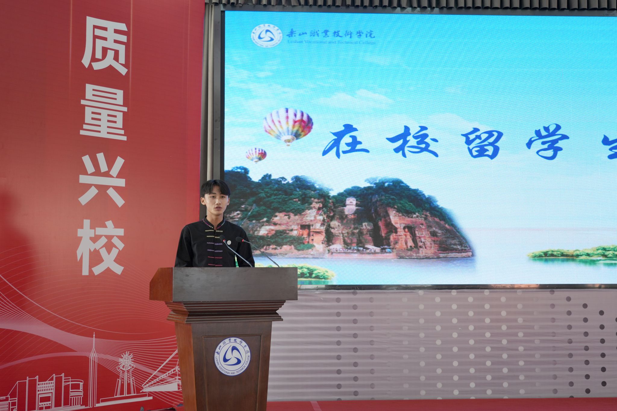 开学典礼在庄严而温馨的氛围中拉开帷幕。刘忠发表了热情洋溢的致辞,向来华新生介绍了乐山这座城市深厚的文化底蕴与优质的教育资源。并围绕来华留学生的成长与发展提出三点期望:一要秉承“诚信、笃志、求真、创新”的校训,涵养品格、锤炼意志;二要专注学业、精进技能,努力成为专业领域的行家里手,为未来职业发展奠定坚实基础;三要主动融入、促进交流,跨越文化与语言障碍,成为中国故事的见证者与传播者,成为推动中外文化交流与人民友好的青年使者。