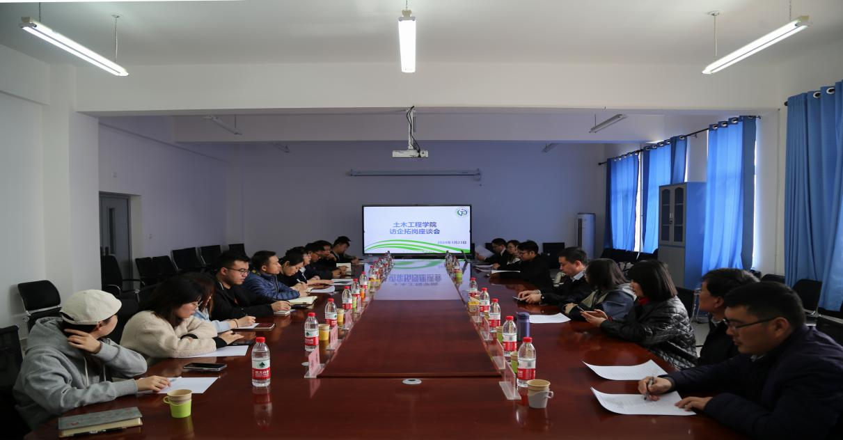 3月23日下午,德赢AC米兰中国官方网站于土木楼309会议室召开“访企拓岗座谈会”。座谈会邀请河北万维建筑工程有限公司、天津华惠安信装饰工程有限公司、天津住宅集团建设工程总承包有限公司、北京城建十六建筑工程有限责任公司、邢台市交通建设集团有限公司、河北省第四建筑工程有限公司等六家企业参加。学院领导班子和毕业班、大三辅导员共同出席本次会议。