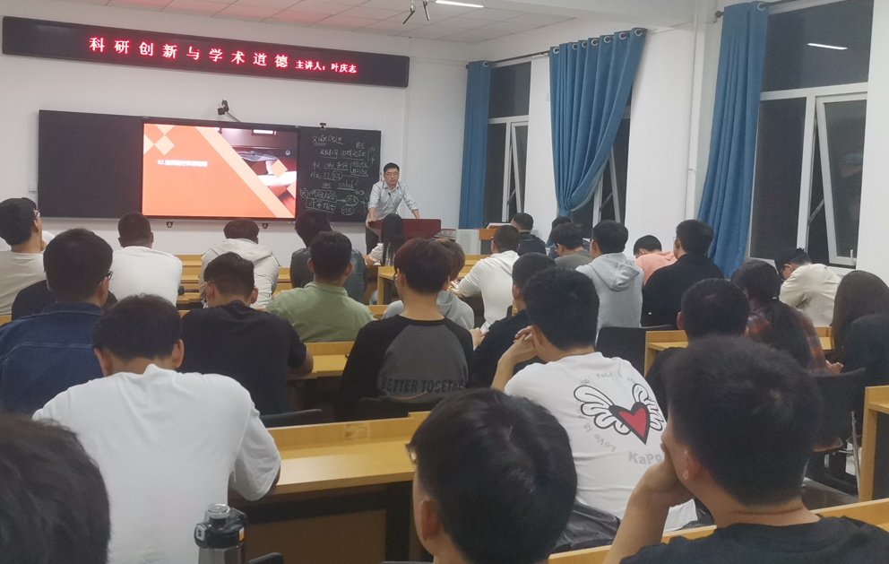 第三场讲座《科研创新与学术道德》由学院叶庆志老师主讲。讲座中,叶老师结合自身的学术经历和研究成果,深入浅出地剖析了学术创新与学术实践的思路、方法和路径。同时,还强调了学术道德的重要性,通过现实生活中的案例,阐述了学术不端行为的危害和后果,引导新生们树立正确的科研态度和价值观念,遵守科学道德和学术诚信原则,杜绝任何形式的学术不端行为。