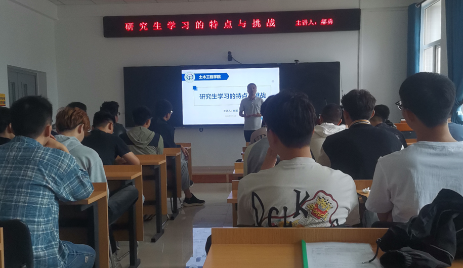 第一场讲座以《研究生学习的特点与挑战》为题。郝勇老师在入学教育中强调,研究生学习相较于本科阶段,具有更高的自主性和专业性。研究生应合理规划时间,保持高度的学习热情和科研动力,同时注重个人素质的提升,实现全面发展。