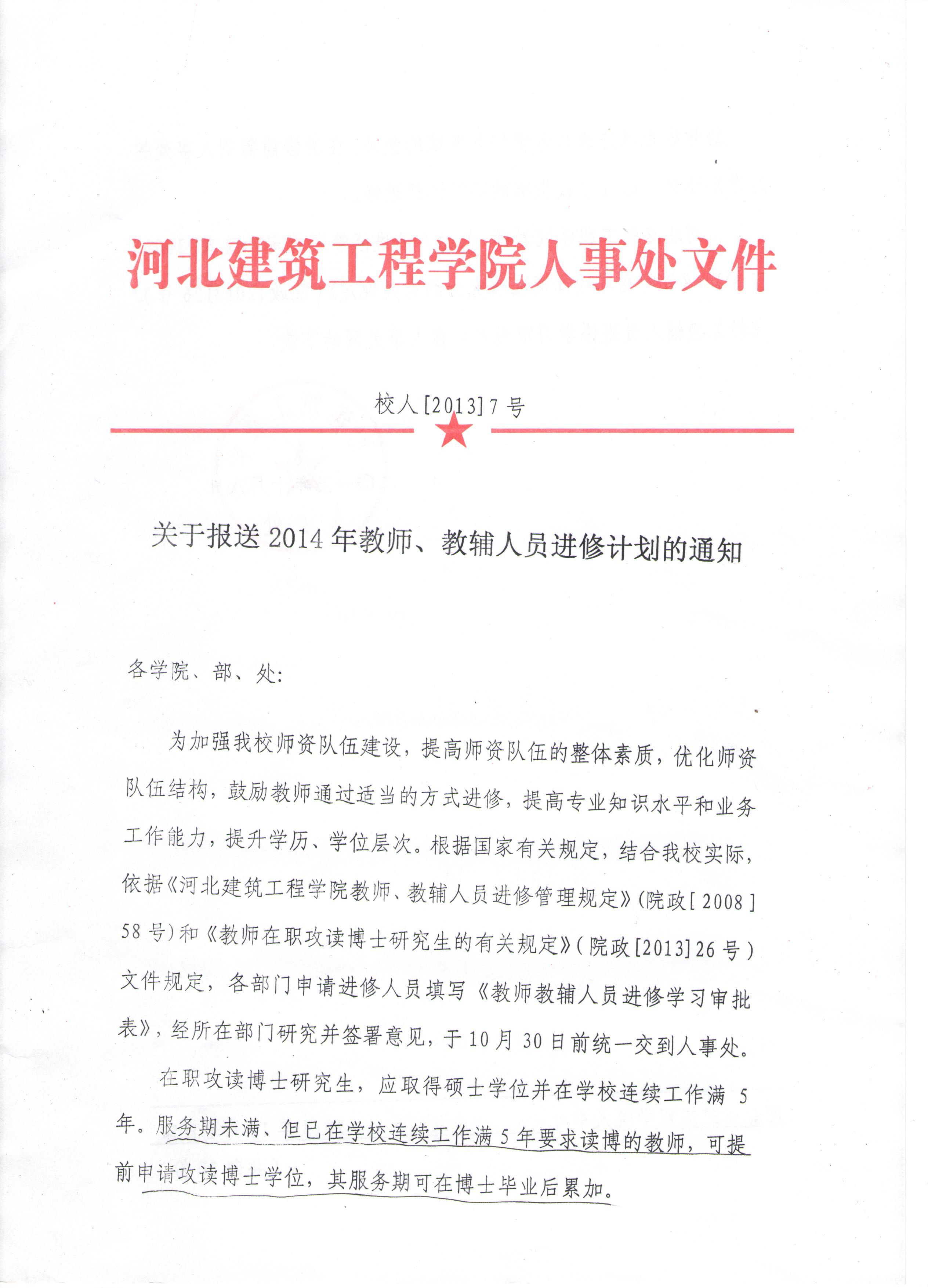 关于报送2014年教师、教辅人员进修计划的通知