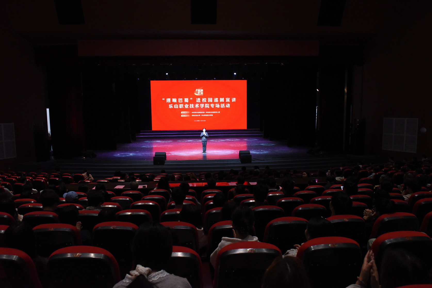 beat365亚洲版官网党委副书记,工会主席张佳,西南石油大学党委宣传部副部长曹正,西南石油大学党委宣传部思想政治教育办公室主任徐鸿涛,以及三位宣讲嘉宾出席活动。beat365亚洲版官网党委宣传部、团委、各二级学院相关负责人,辅导员代表和1000余名学生代表同堂聆听宣讲报告。