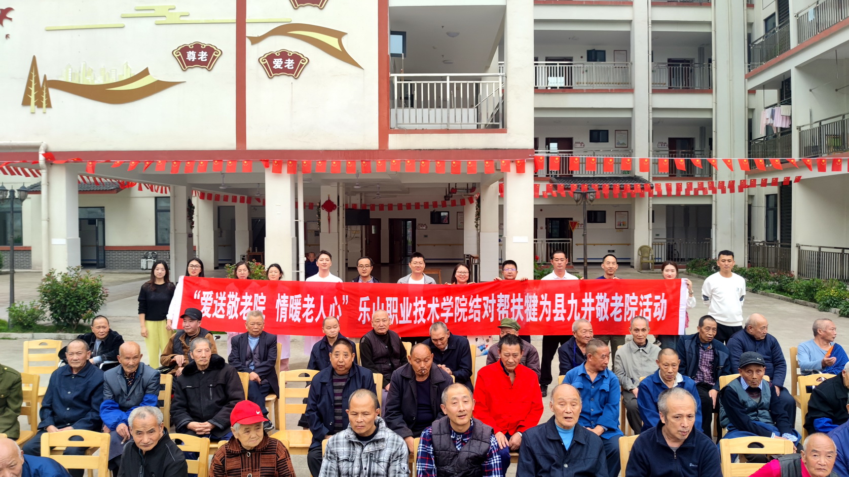 10月16日,beat365亚洲版官网联合市人社局走进犍为县九井敬老院,开展结对帮扶活动,为老年人带来深秋的温暖。