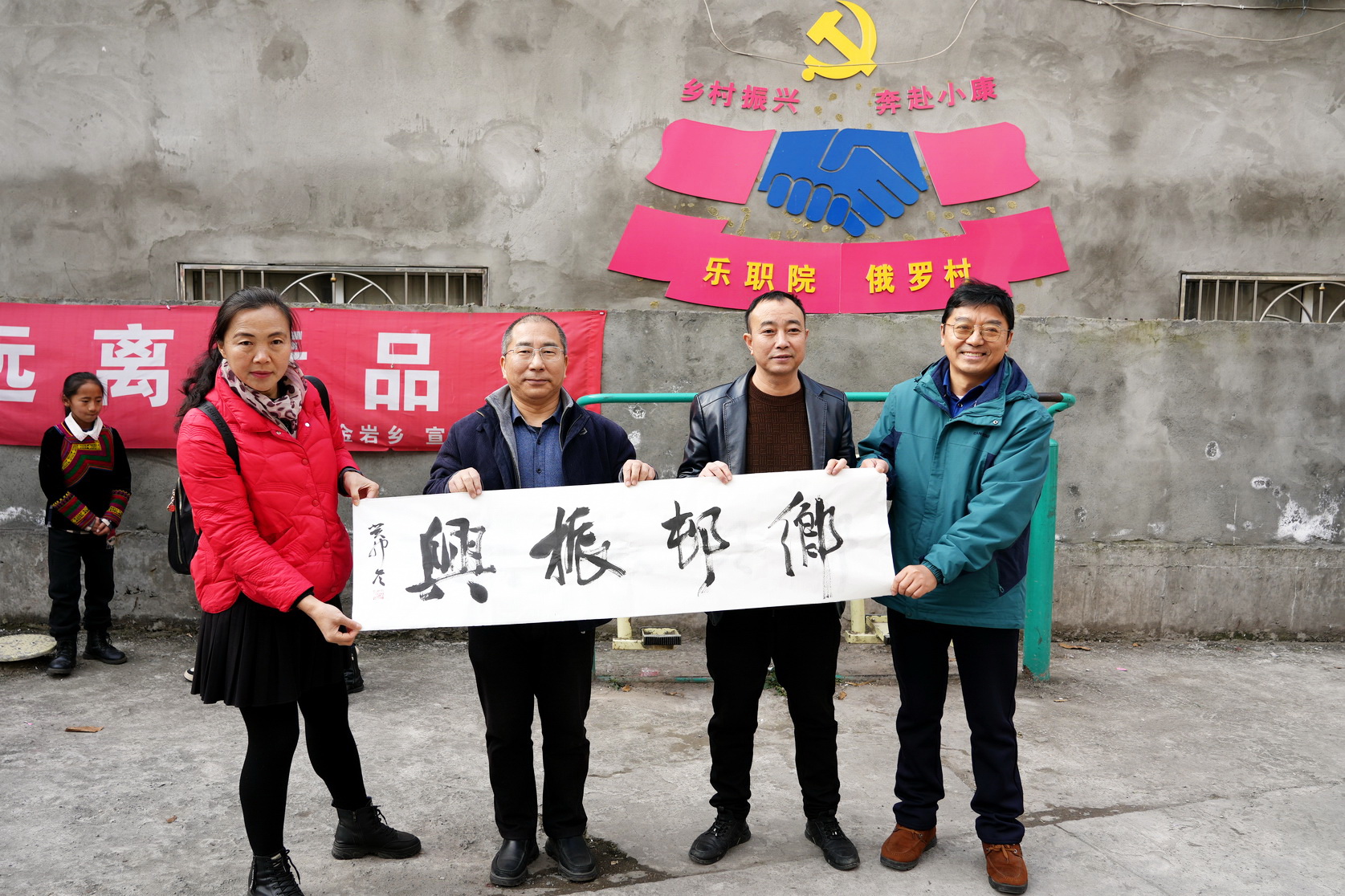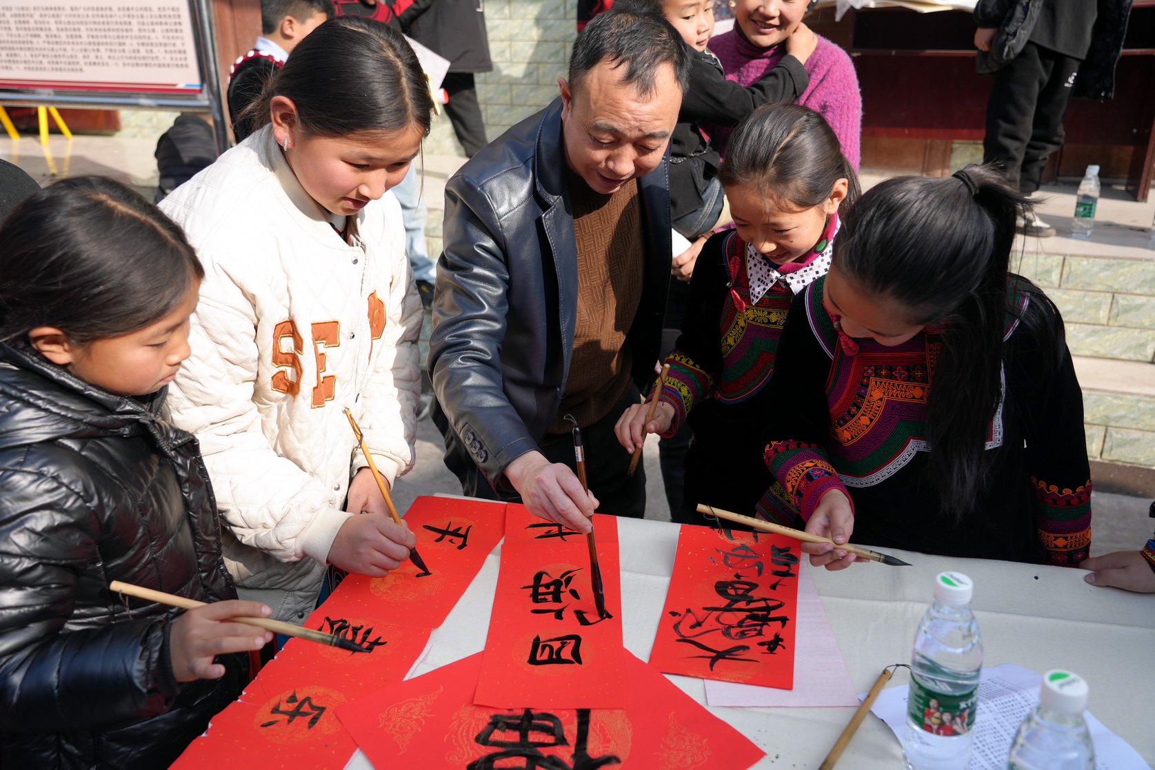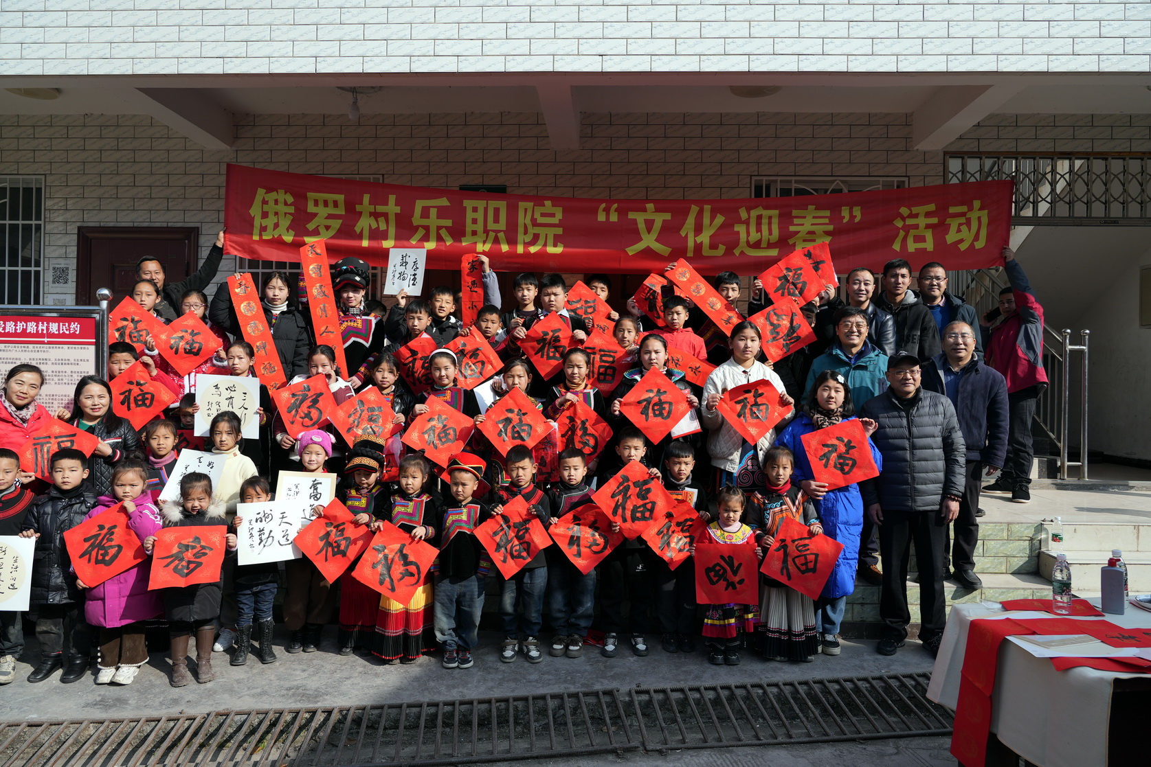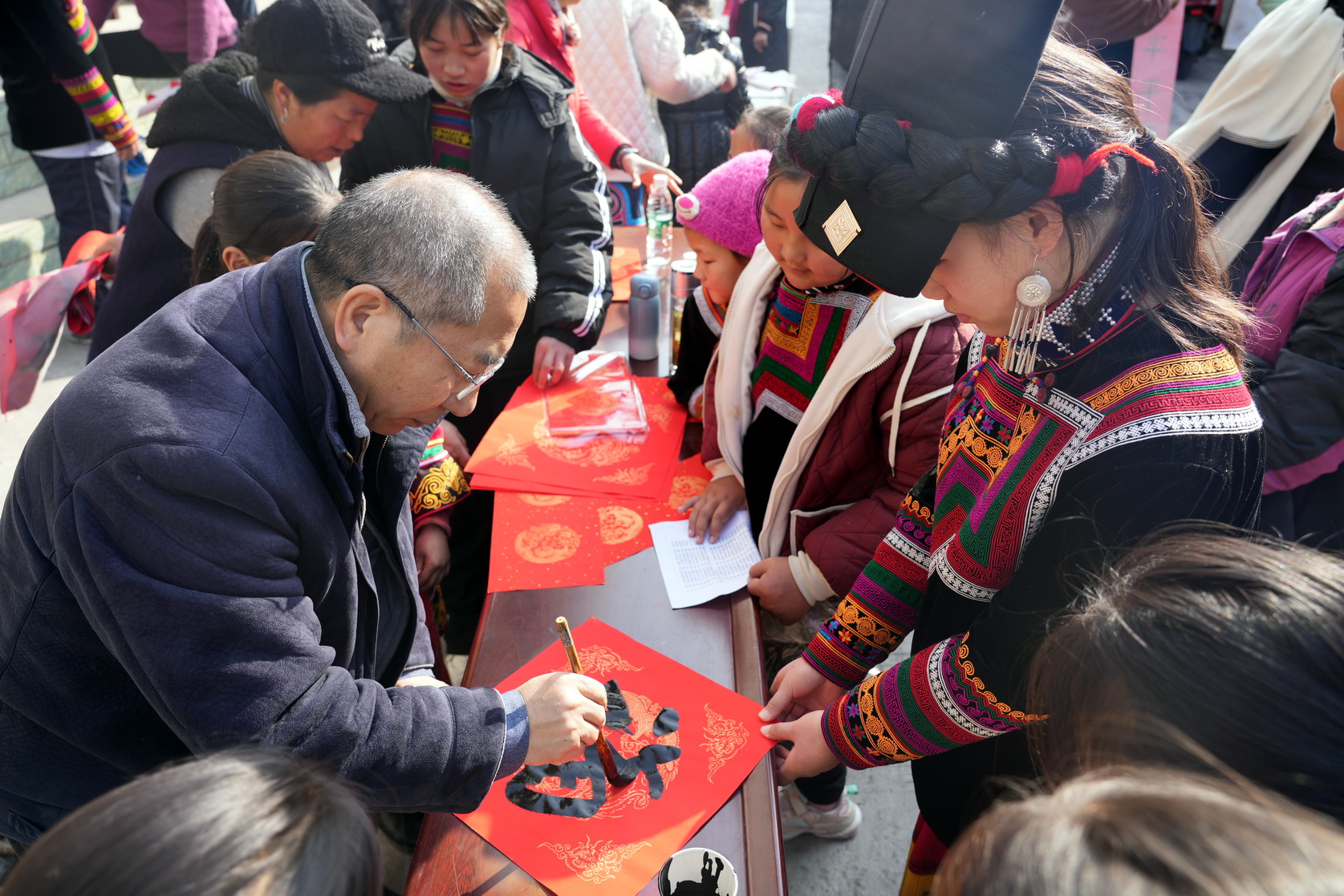 1月13日,学校书法协会会长郑平率书法协会部分会员前往学校对口帮扶的峨边彝族自治县金岩乡俄罗村开展“文化迎春”送福送春联活动。活动还邀请了乐山市书法家、中国书法协会会员伍春冬先生参加。