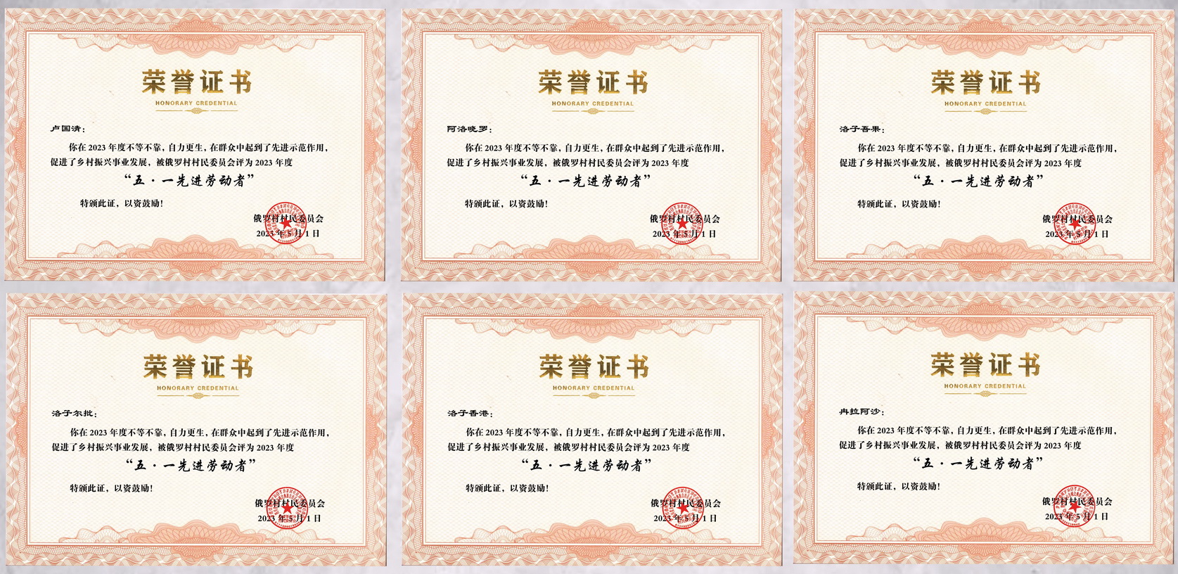 为鼓励群众“不等不靠”,树立“自力更生”典范,beat365亚洲版官网在峨边彝族自治县俄罗村设立了“激励自立”项目帮扶资金。近日,经组长推荐,村委会审核,评选出了冉拉阿沙等6名在种植养殖和带动务工方面表现突出的村民为俄罗村2023年度“先进劳动者”。第一书记刘科为他们颁发了荣誉证书和3000元奖金。
