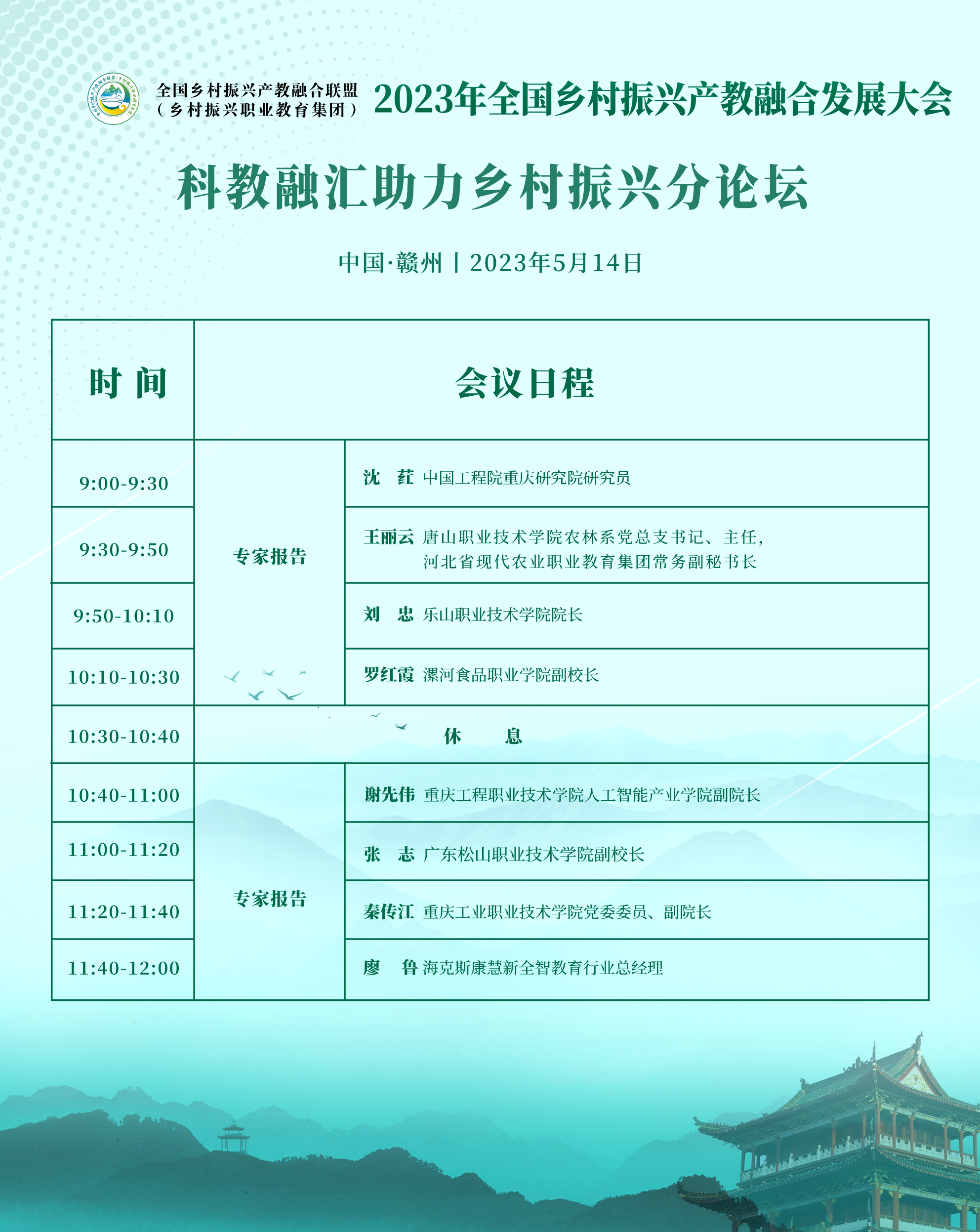 5 月 12 -14 日,全国乡村振兴产教融合联盟在江西省赣州市组织召开“2023 年全国乡村振兴产教融合发展大会”,会议主题为“融通融合融汇,构建教育服务乡村振兴新格局”。