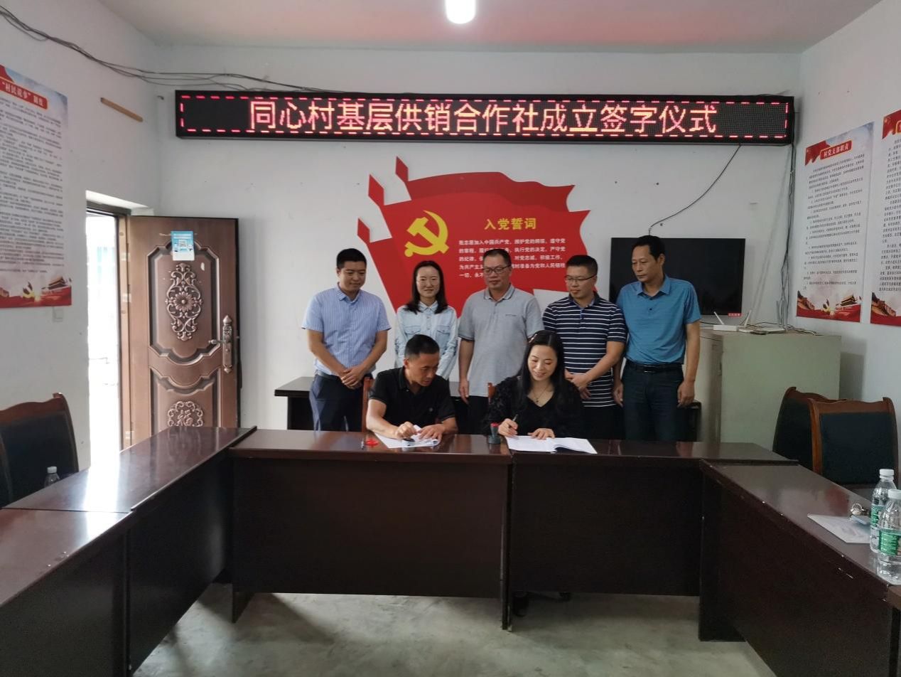 同心村支书陈希祥与乐山市供销农业科技发展有限公司总经理谢麟签订了合作协议。