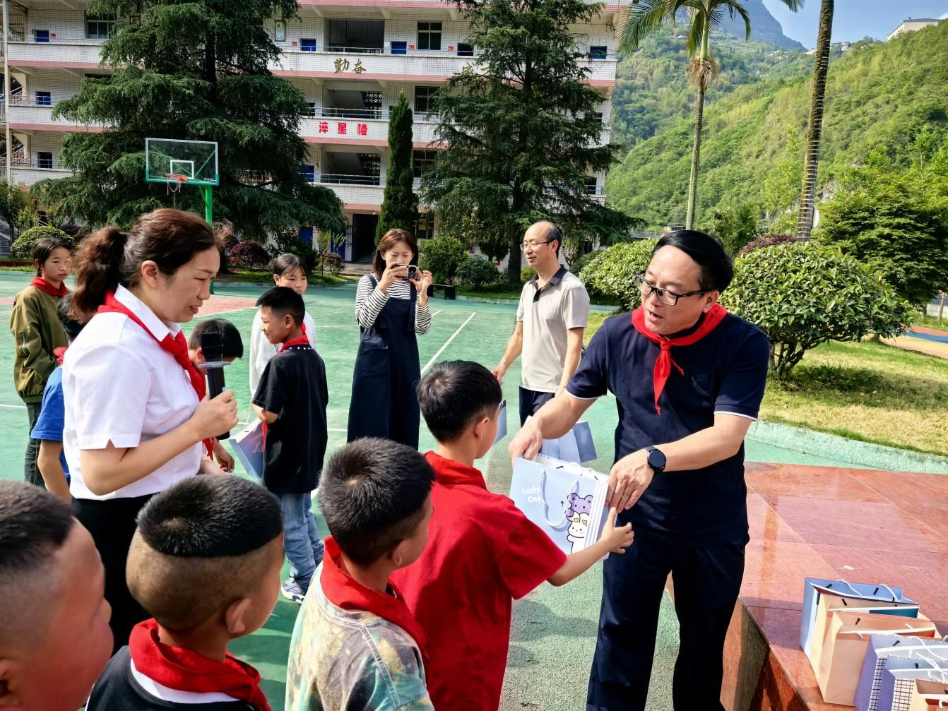 “小朋友们,希望你们好好学习,天天向上。”成定彬、周芹将书包、文具、书籍等节日礼物送到孩子们手中,鼓励他们珍惜时光,努力汲取知识的养分,并向辛勤耕耘在教育一线的教师们表示感谢和敬意。成定彬指出,教育在乡村振兴中发挥着基础性、先导性作用,让农村孩子在家门口接受高质量教育,有利于培养、稳住、留住服务乡村产业发展的人才。beat365亚洲版官网将同地方一道,关心关爱儿童的身心健康,在教师人才培养、困难学生资助等方面共同发力,为他们创造良好的学习和生活环境。