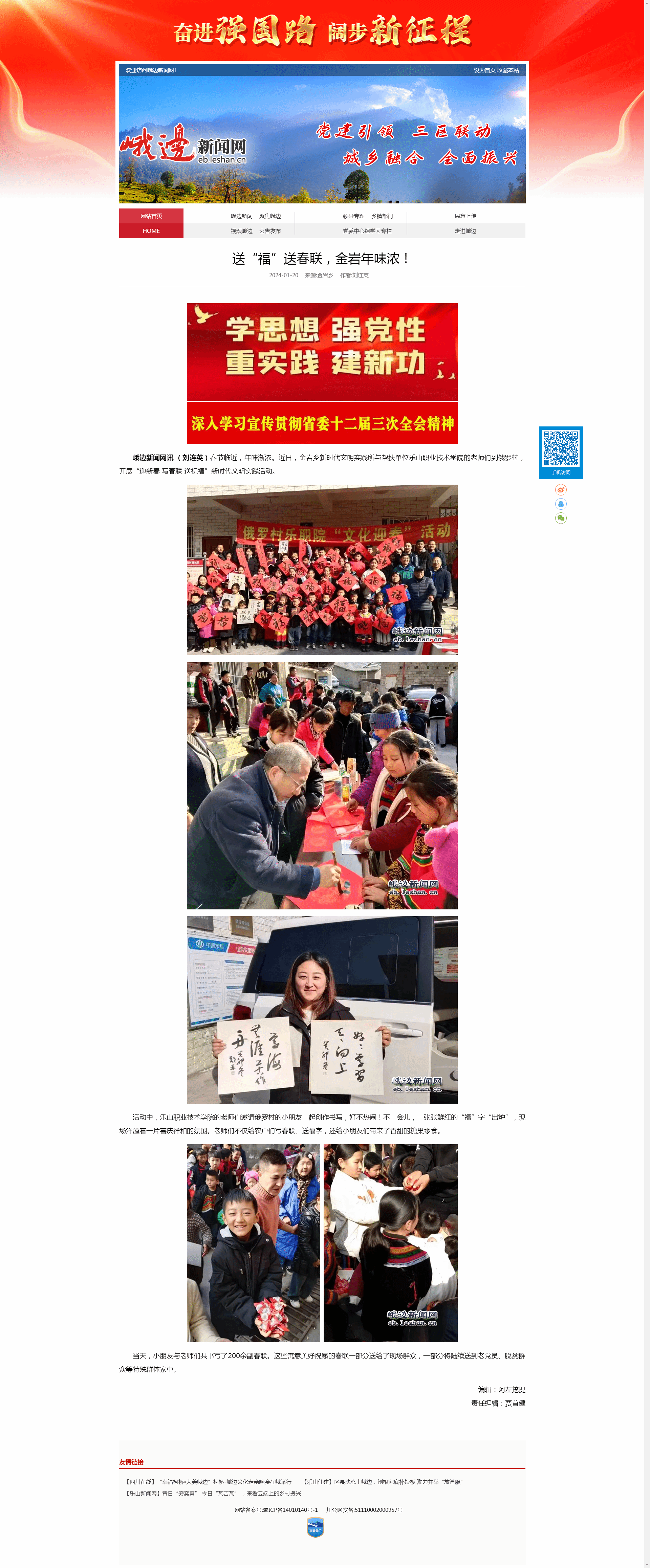 乐山新闻网:送“福”送春联,峨边金岩年味浓!