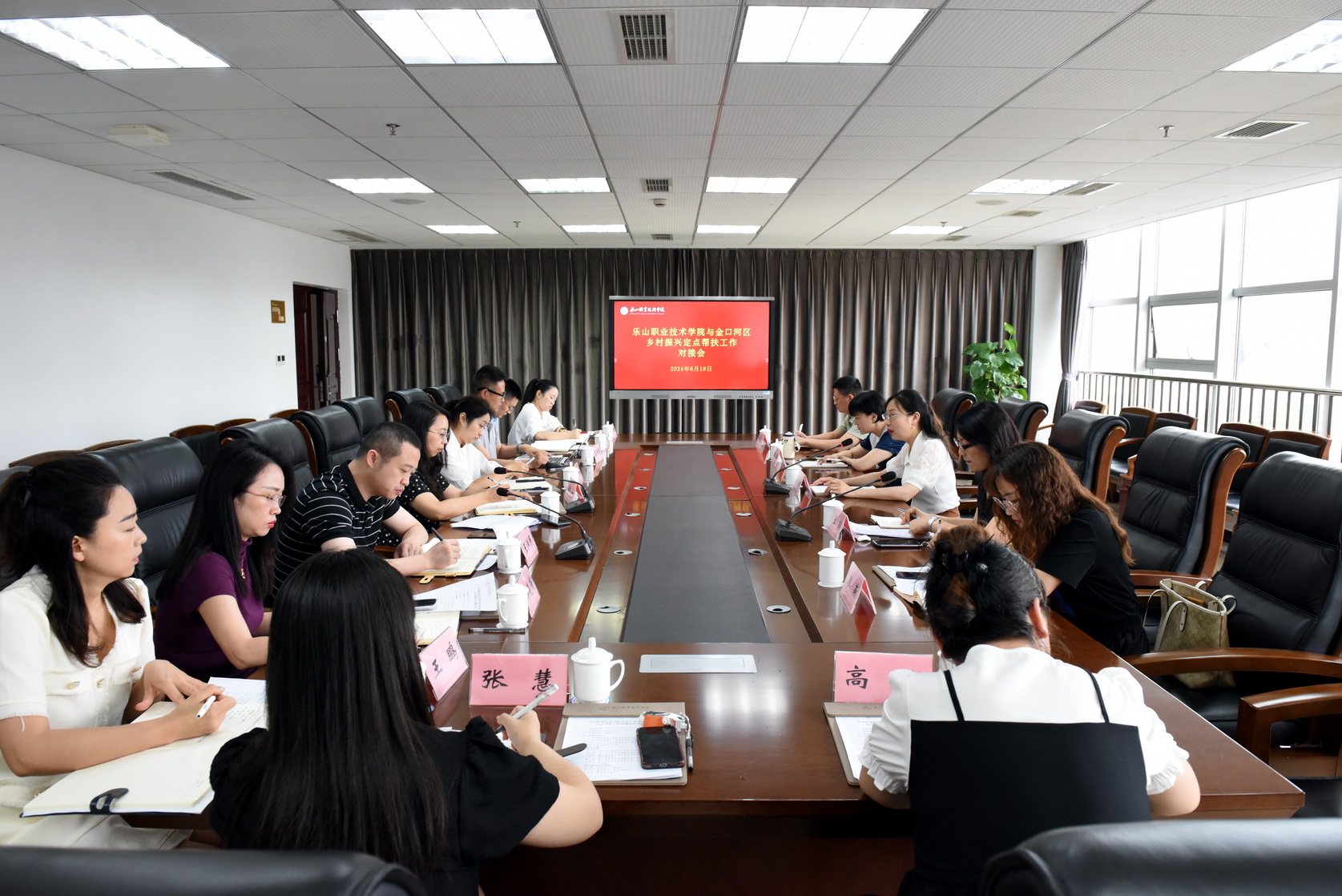 6月18日上午,金口河区委常委、组织部部长毛丹一行来到beat365亚洲版官网,与学校对接乡村振兴定点帮扶工作,共同商讨深化定点帮扶和校地合作事宜,学校党委委员、副校长周芹出席并主持会议,学校有关部门和二级学院负责人参加会议。
