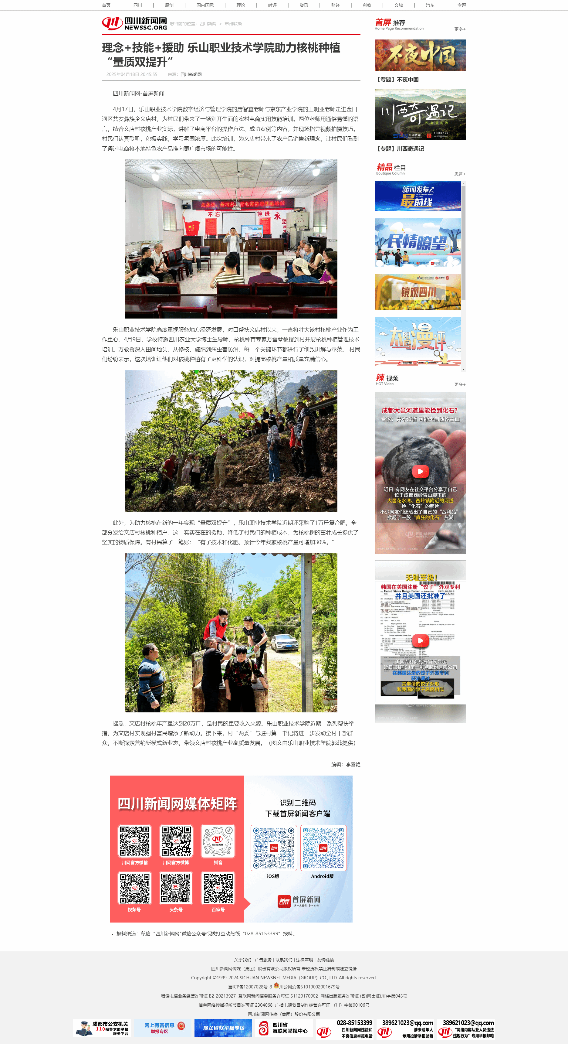 四川新闻网:理念+技能+援助 beat365亚洲版官网助力核桃种植“量质双提升”
