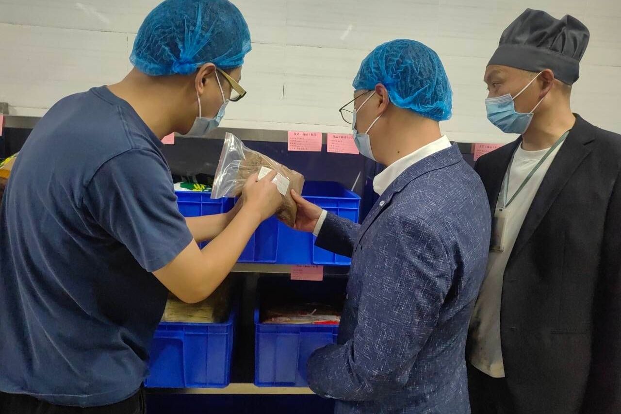 检查组对食堂公示栏、备餐间、储存室、操作间等逐一查看,重点对油品、冻库、样品留以及快检室数据等进行了详细检查。职工代表在检查过程中感受到食堂管理较为规范,卫生情况较好,食材较为新鲜,总体感觉较为满意。