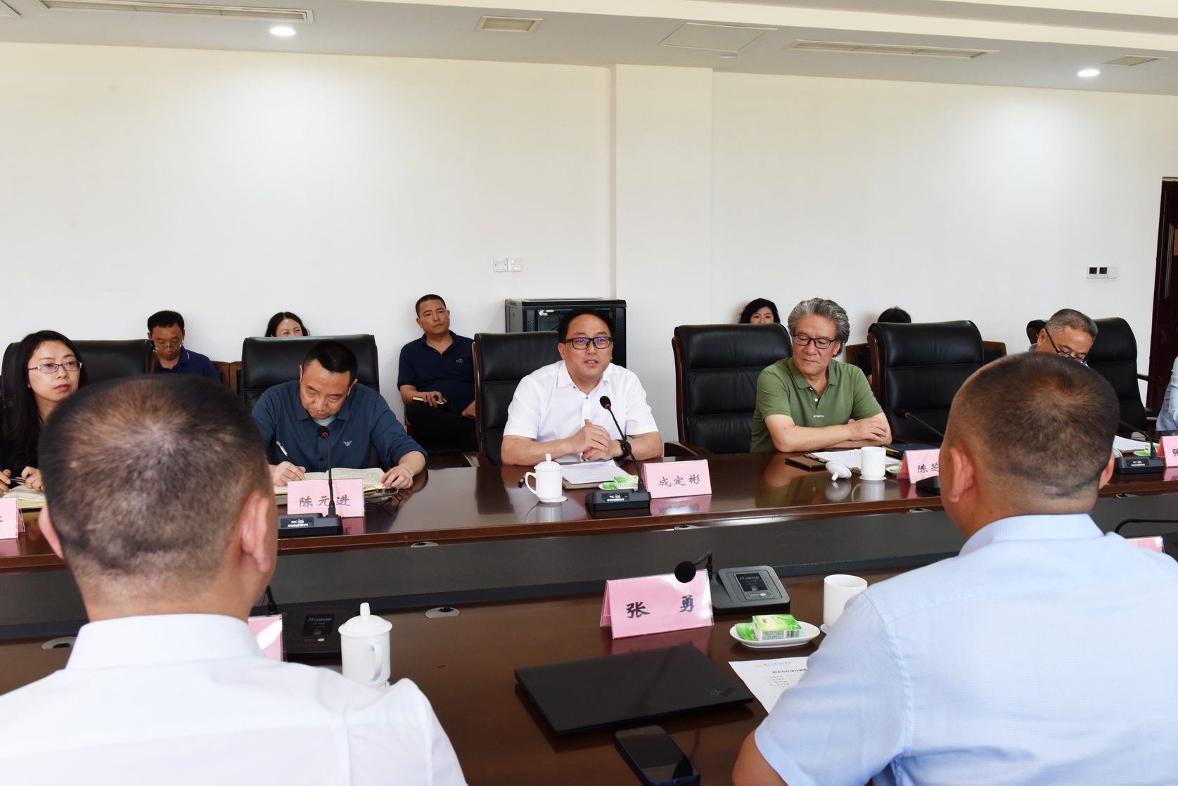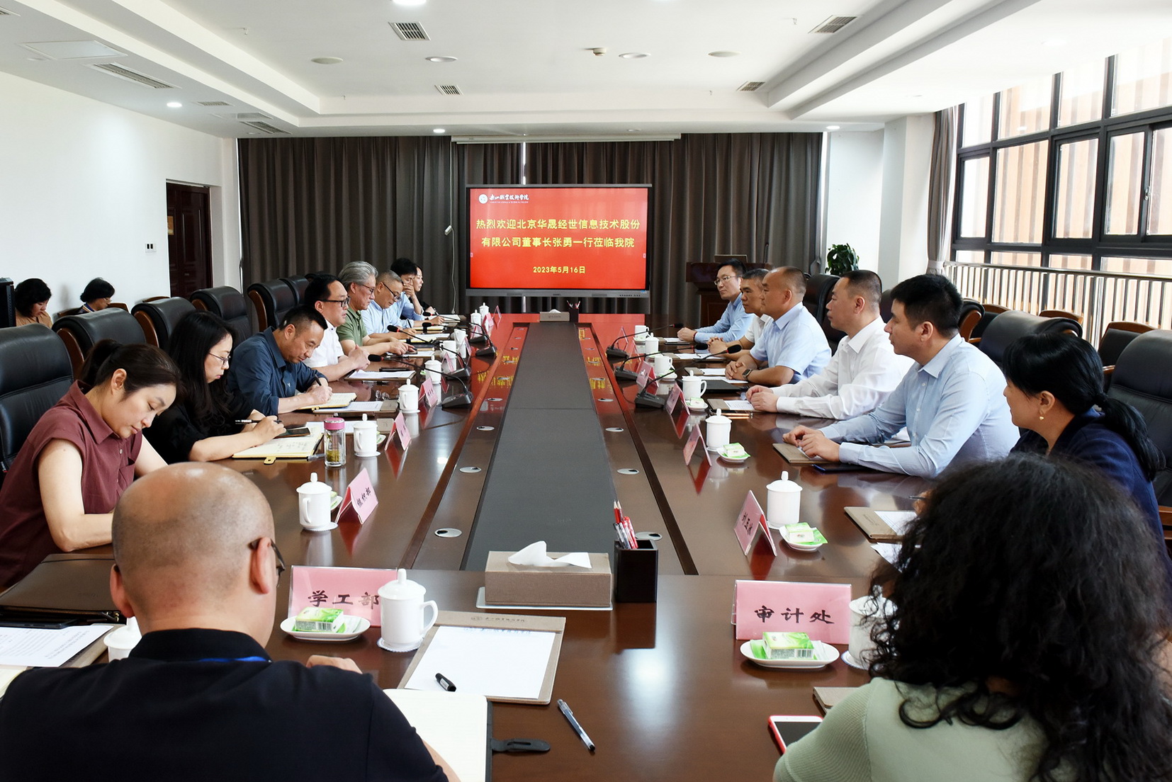 5月16日下午,北京华晟经世信息技术股份有限公司董事长张勇率队,一行六人来beat365调研,在学术交流中心2001会议室与学校党委书记成定彬等开展校企合作项目成果座谈交流。学校党委副书记陈芝海,党委委员、副院长陈元进、张学河、周芹及相关部门、二级学院负责同志参加座谈。会议由张学河主持。