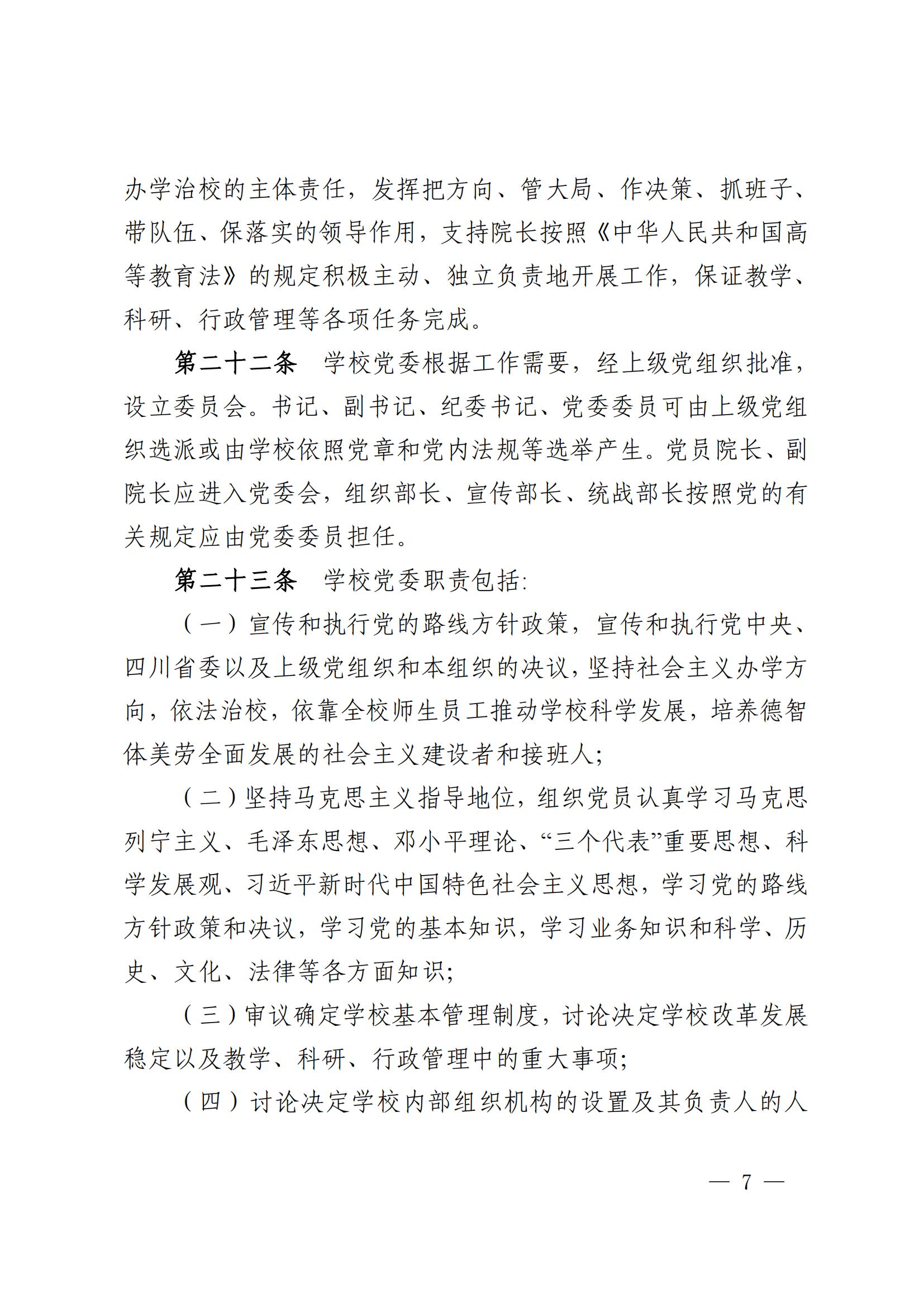 按照《四川省教育厅关于普通高等学校章程修订工作的通知》(川教函〔2022〕176号)文件精神,学校于2022年完成了《beat365亚洲版官网章程》修订工作,并于2022年12月7日通过四川省教育厅核准。现予公布。