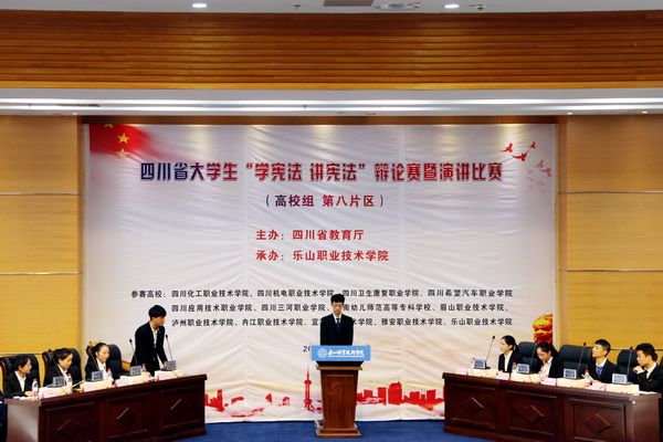 2018年9月19日,四川省大学生“学宪法,讲宪法”辩论赛(第八片区)决赛,在学院图书馆学术报告厅举行。乐山师范学院科技处副处长冉勇、政法学院教授刘克稳,成都理工大学工程技术学院思政部主任杨志军、思政教研室副主任王光、语文教研室老师张国强、谷利平担任比赛评委。