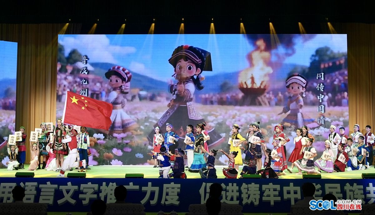 施小琳在致辞中说,全国推普周领导小组将本次活动放在凉山举行,是对四川工作的鞭策和推动,也为我们向各兄弟省(区、市)学习提供了宝贵机会。国家通用语言文字是中华文明传承发展繁荣的重要载体,是促进各民族交往交流交融的桥梁纽带。四川是一个多民族、多语言、多方言的省份,近年来认真贯彻习近平总书记重要指示批示精神,坚持以服务铸牢中华民族共同体意识为主线,深入实施加大国家通用语言文字推广力度“五大行动”,扎实推进“学前学好普通话”“普通话+职业技能”融合培训等重点工作,推普工作取得明显进展。我们将以此次活动为契机,坚持立德树人夯实基础,持续提升师生语言文字素养,推动学校语言文字工作高质量发展;坚持聚焦重点精准发力,着力提升社会层面特别是民族地区国家通用语言文字普及水平,促进各民族团结进步,持续铸牢中华民族共同体意识;坚持创新方法丰富举措,强化语言文字服务功能,加强对外合作交流,打造多元中华优秀传统文化传播矩阵,坚定文化自信;坚持统筹协调凝聚合力,落实党委政府职责,发动社会力量广泛参与,共同推动国家通用语言文字推广普及,不断开创语言文字工作新局面,为全面建设社会主义现代化四川、推进中华民族伟大复兴作出新的更大贡献。