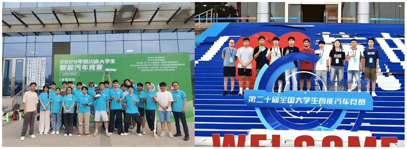2025年6月,团队首次亮相四川省大学生智能汽车竞赛,斩获4项三等奖,在实战中积累经验、查找不足。省赛结束后,师生立即投入西部赛备战,对车模机械结构、传感器布局、控制算法等进行全方位优化升级,甚至重新设计大功率无线充电模块与自制硅胶胎,车模性能实现质的飞跃。7月,在成都工业学院举办的西部赛中,团队不负众望,勇夺2项一等奖(含1项专科组第一名),同时在智慧配送创意赛中斩获一等奖1项、二等奖2项,顺利晋级全国总决赛。