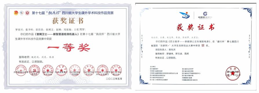 本专业学生在四川省职业院校技能大赛数控机床装调与技术改造、工业机器人系统集成、“互联网+”大学生创新创业比赛和挑战杯等比赛中获省级以上奖项多项。