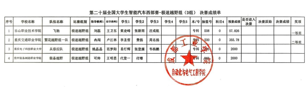 7月18日至21日,第二十届全国大学生智能汽车竞赛西部赛区比赛在成都工业学院隆重举行。beat365智能制造学院派出由陈景琪、刘磊、谈振等教师指导的三支参赛队伍,分别参加缩微电磁组、极速越野组和缩微光电组三个赛项的角逐。经过预赛、决赛两轮激烈比拼,最终我院缩微电磁组和极速越野组双双斩获专科组一等奖(第一名),并在本专科混合排名中表现亮眼——缩微电磁组位列总排名第8(共61支队伍),极速越野组位列总排名第13(共43支队伍)。