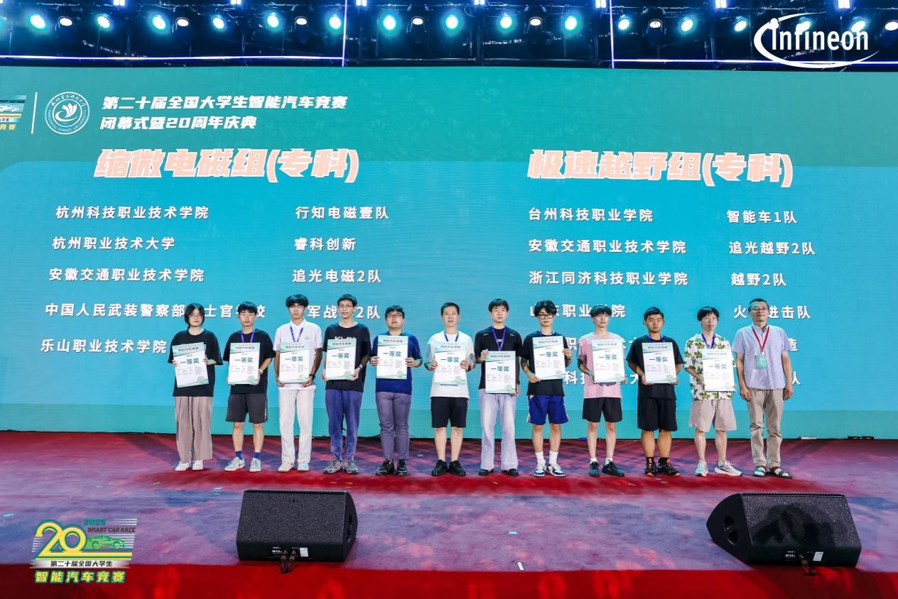 8月18-20日,第二十届全国大学生智能汽车竞赛在杭州电子科技大学举行,beat365由智能制造学院陈景琪、刘磊两位老师率领3支队伍(缩微电磁组、极速越野组和智慧配送组)前往参赛,经过激烈角逐,夺得缩微电磁组(专科组)全国一等奖1项,极速越野组(专科组)全国二等奖1项。