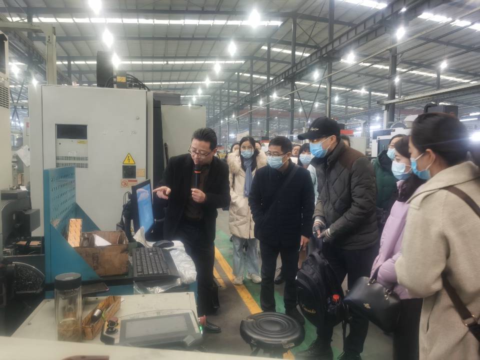 为推动智能制造产业学院建设,深化校企合作,产教融合,全面提升教师队伍双师素质,2022年1月5日上午,机电工程系全体教师赴四川德恩精工科技股份有限公司开展学习调研,德恩精工董事长雷永志、常务副总经理谢龙德、总经办主任李小红热情接待机电系一行。