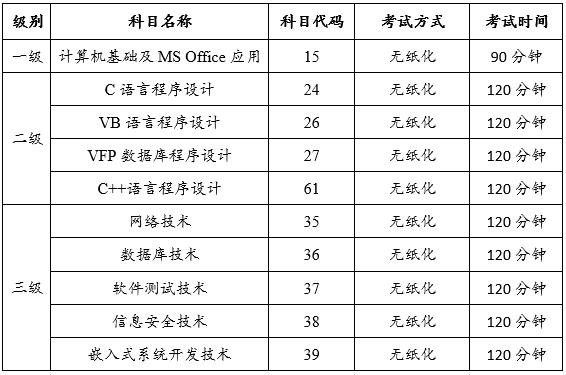 本次报考范围包括全国计算机等级一、二级。