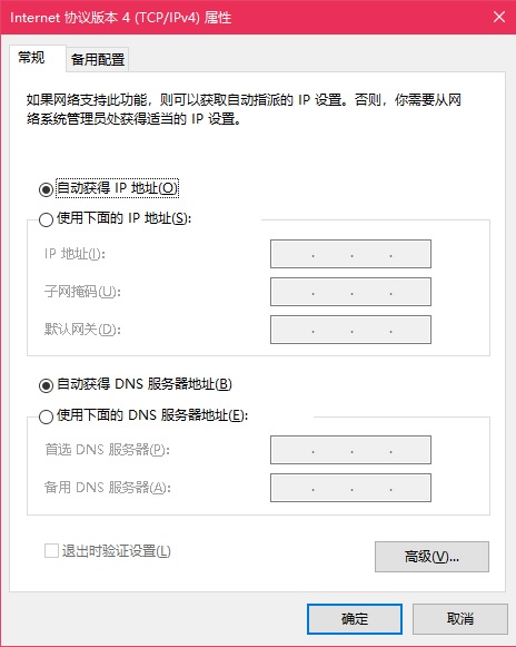 1. IP地址和DNS服务器地址设置为自动获得(推荐);