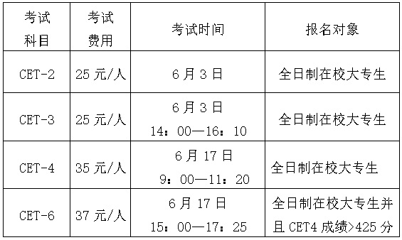 备注:CET-2为机考,其余科目为笔试