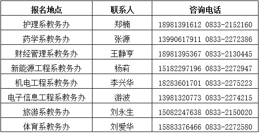 (五)报名点联系人及咨询电话