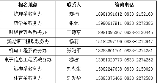 (五)报名点联系人及咨询电话