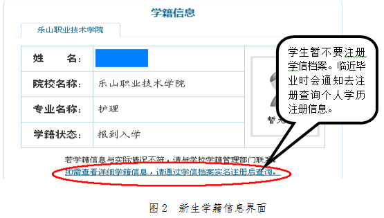 学生暂不在“学信网”上注册个人帐户,临近毕业时学院将发文通知学生注册,以确保每位毕业生均能查询个人学历注册情况,否则,一切后果学生本人自负。