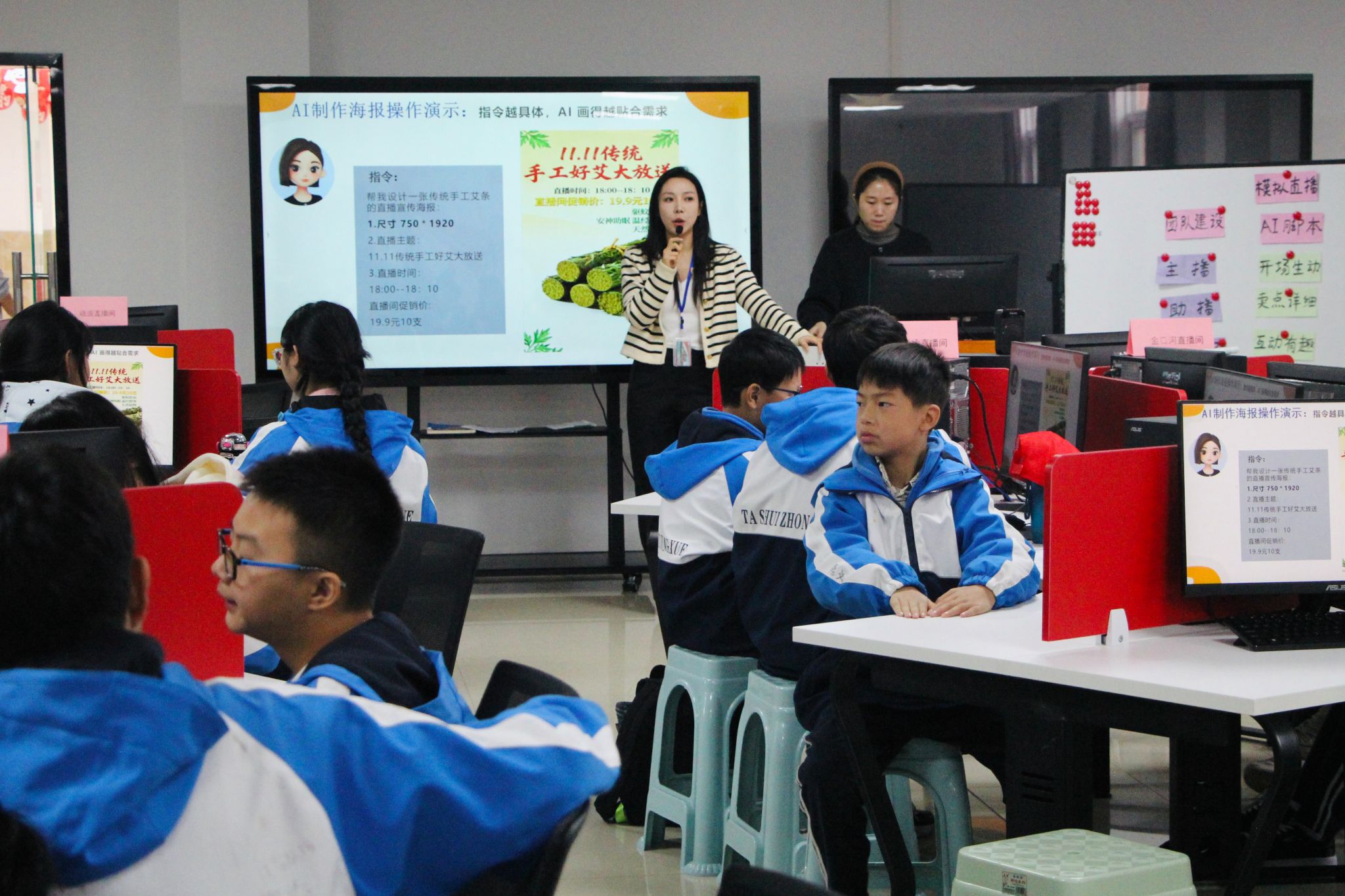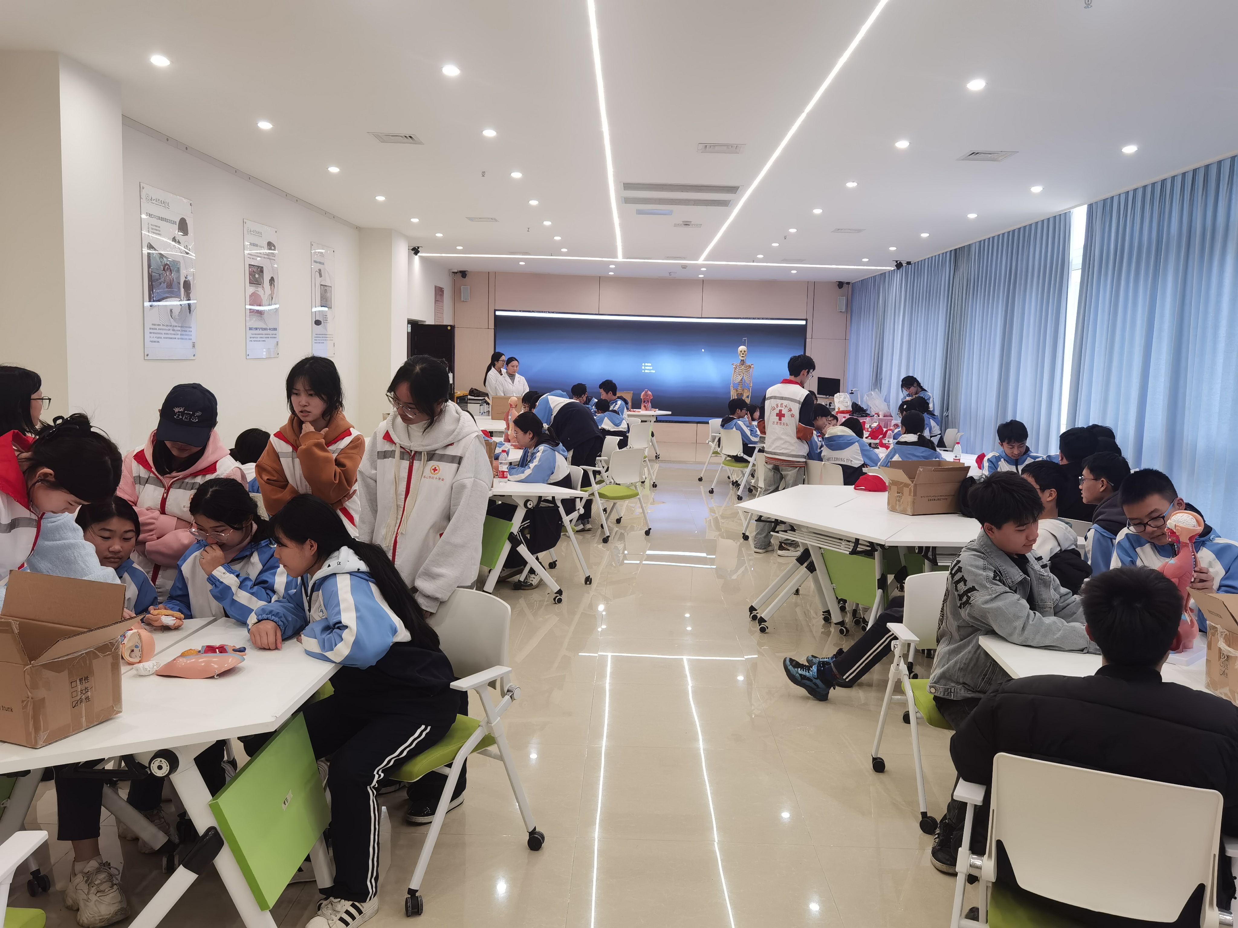 “职业体验”主题则聚焦传统文化与现代职业的结合。学生们在“小小主播”课程中学习AI辅助脚本创作与海报设计,并通过模拟直播实战感受新媒体行业的魅力;同时,在“生命之旅”“急救防护”“艾灸体验”等课程中,通过情景模拟与实践操作,增强了生命安全意识和健康护理能力。