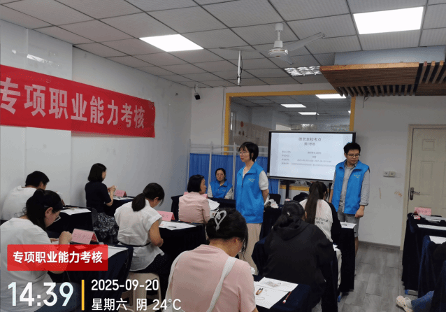 文化旅游学院詹恒、范鸿雁两位教师应乐山市德艺职业技术培训学校邀请,于2025年9月20日下午参与“专项职业能力考核——嘉州绣手工制作”的考评鉴定,此次考评共计48人参加。