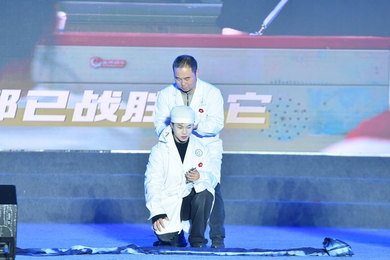 晚会现场,医学学院学子带来节目《送你一朵小红花》。学生们舞蹈动作整齐有力,充满活力,学院教师现场展示红十字急救技术,充分展现出医学学院师生积极向上、团结友爱的精神风貌。